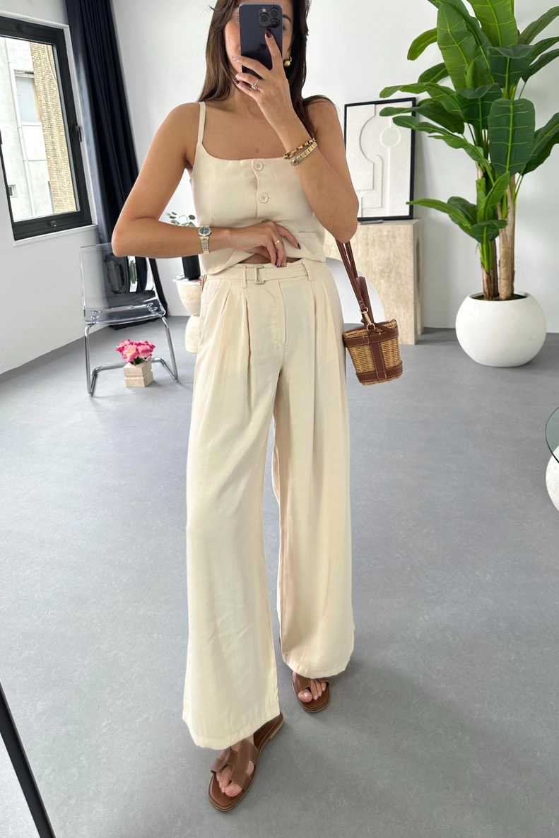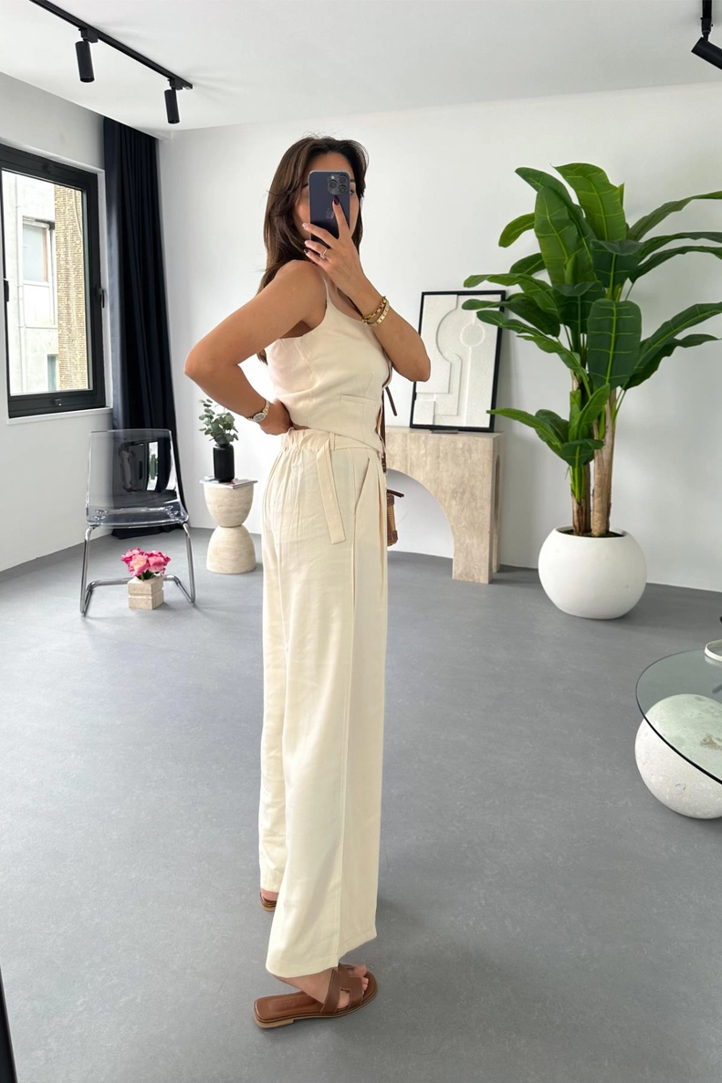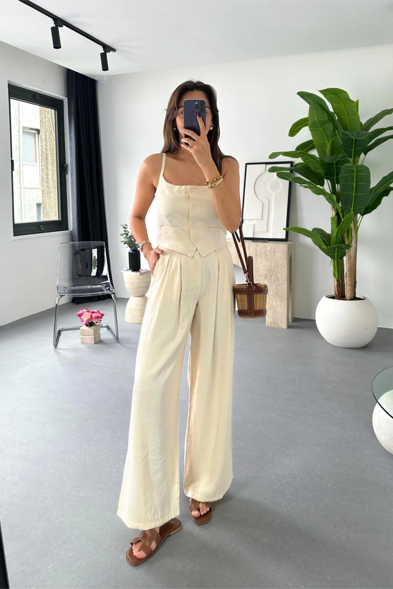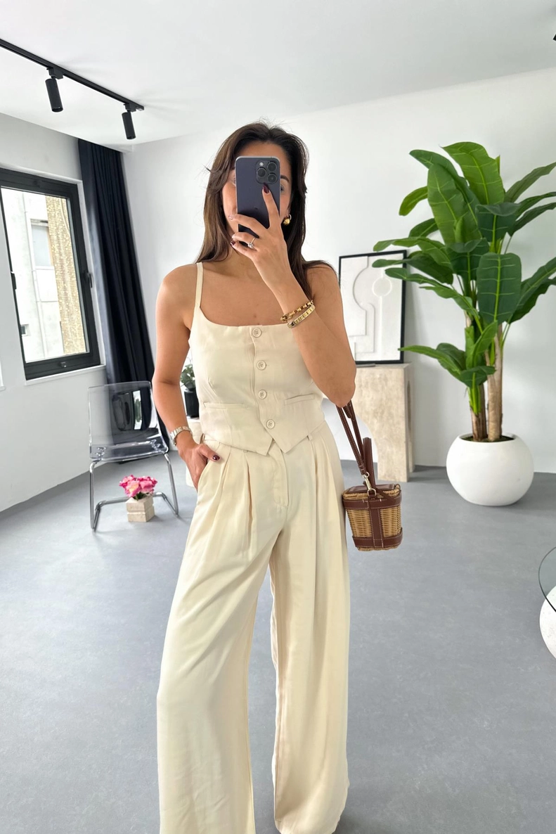Rena Bej Kemer Detaylı Yelek Şort Takım