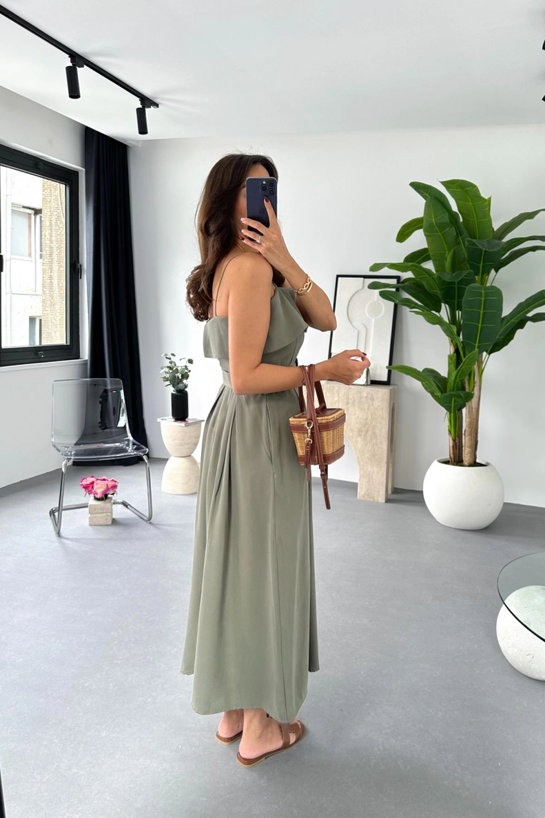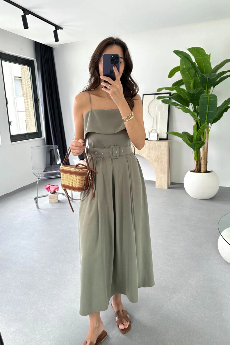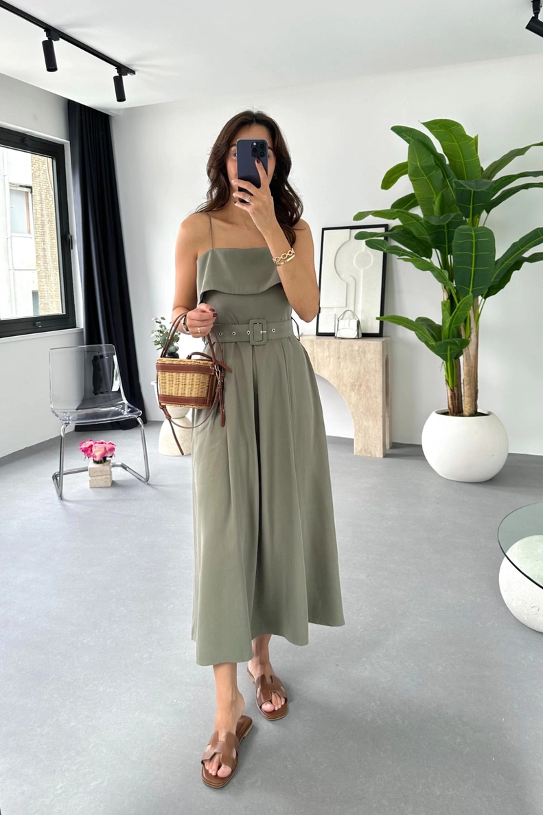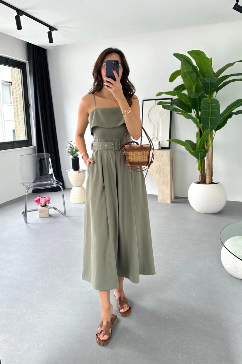 Chasy Haki İp Askılı Kemer Detaylı Elbise