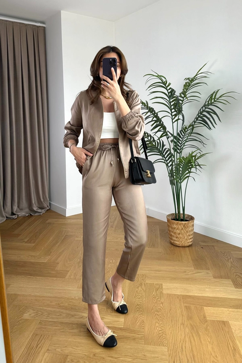 Ana Sayfa Takım Chelsy Bej Fermuarlı Takım