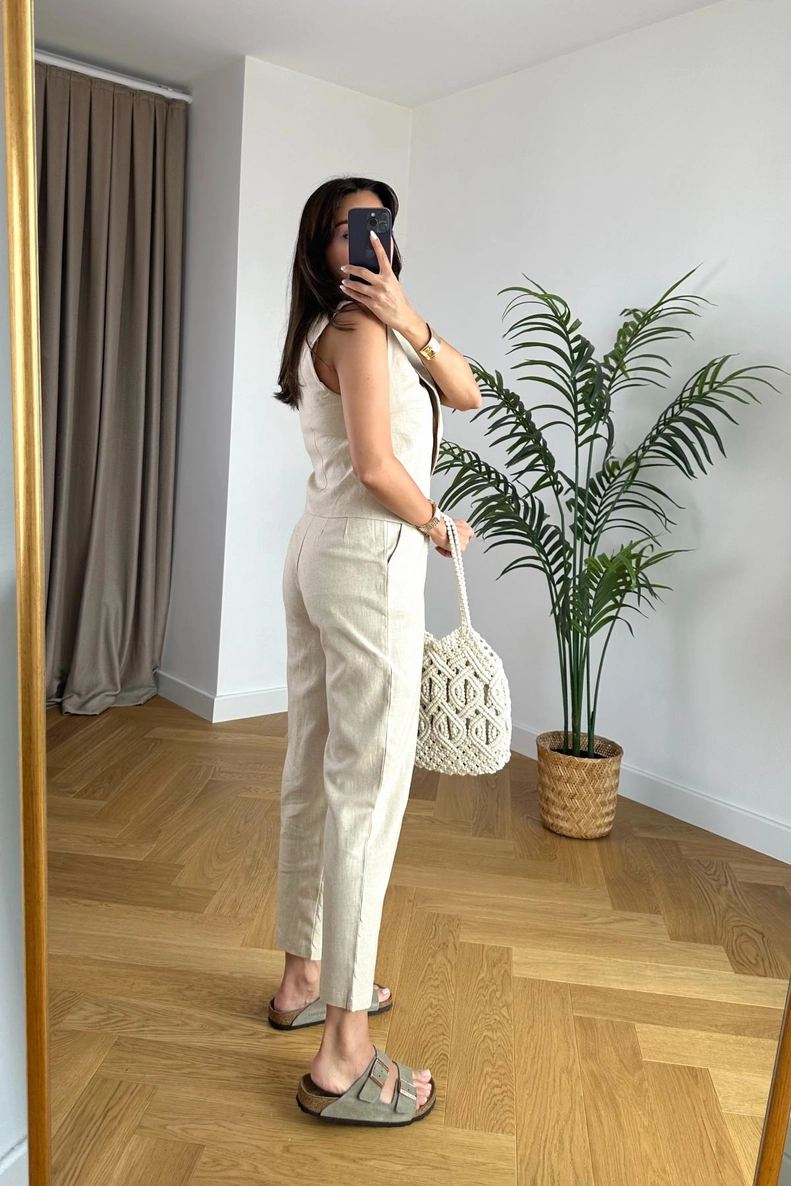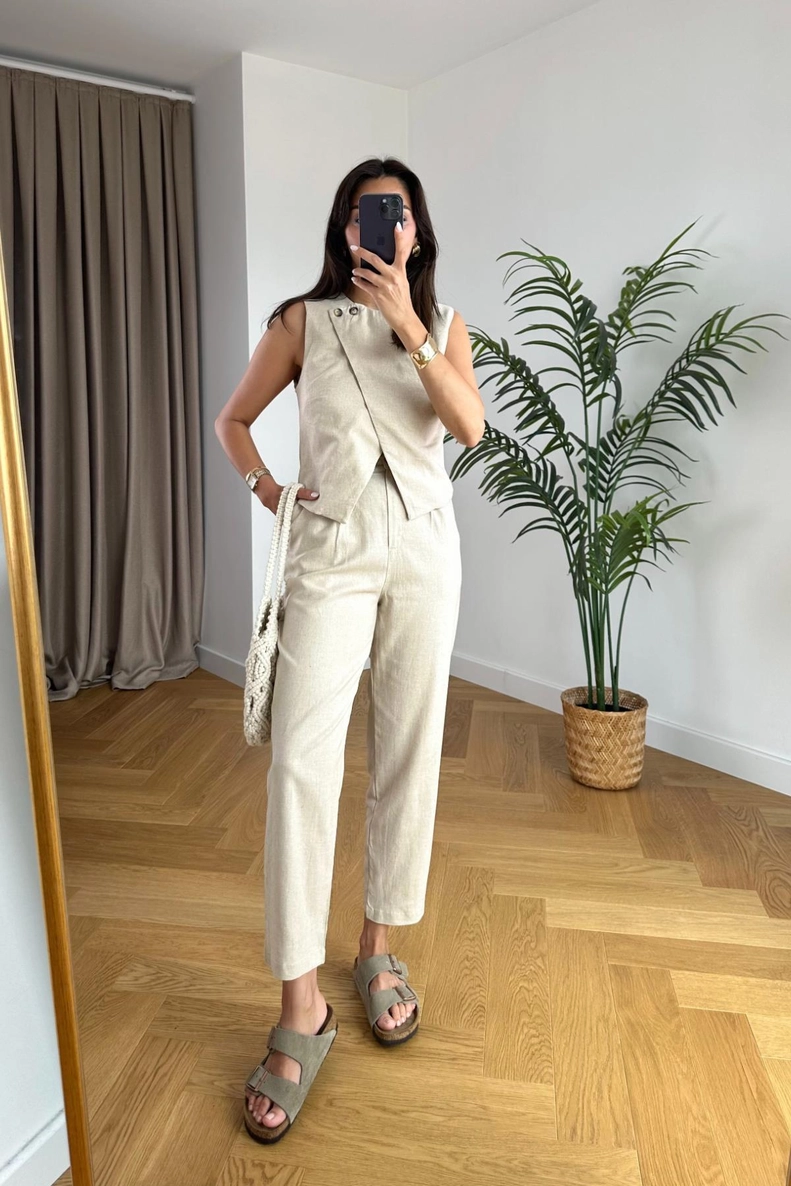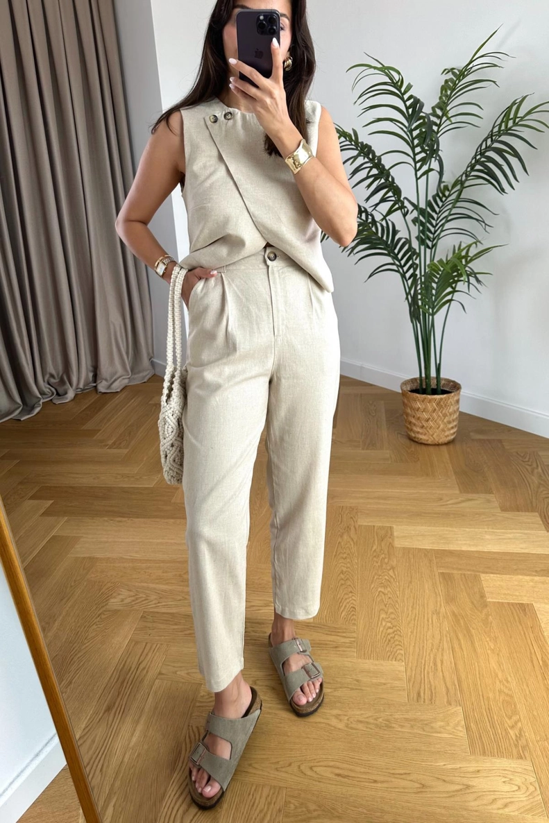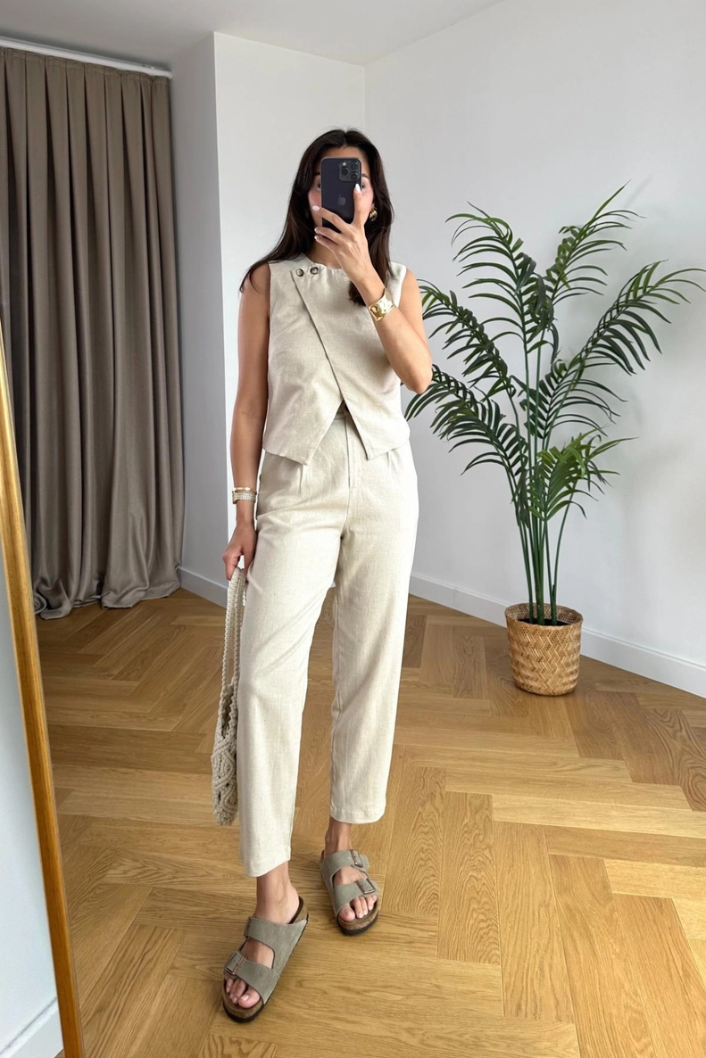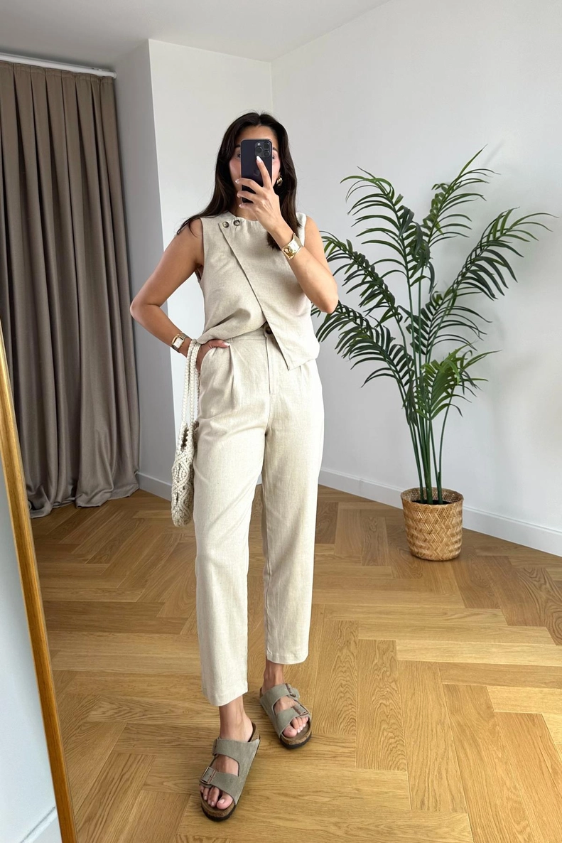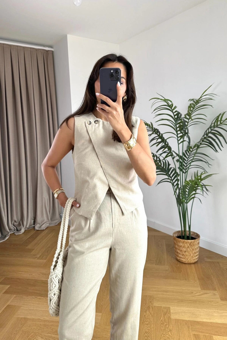 Emely Kırık Beyaz Yelek Pantolon Takım