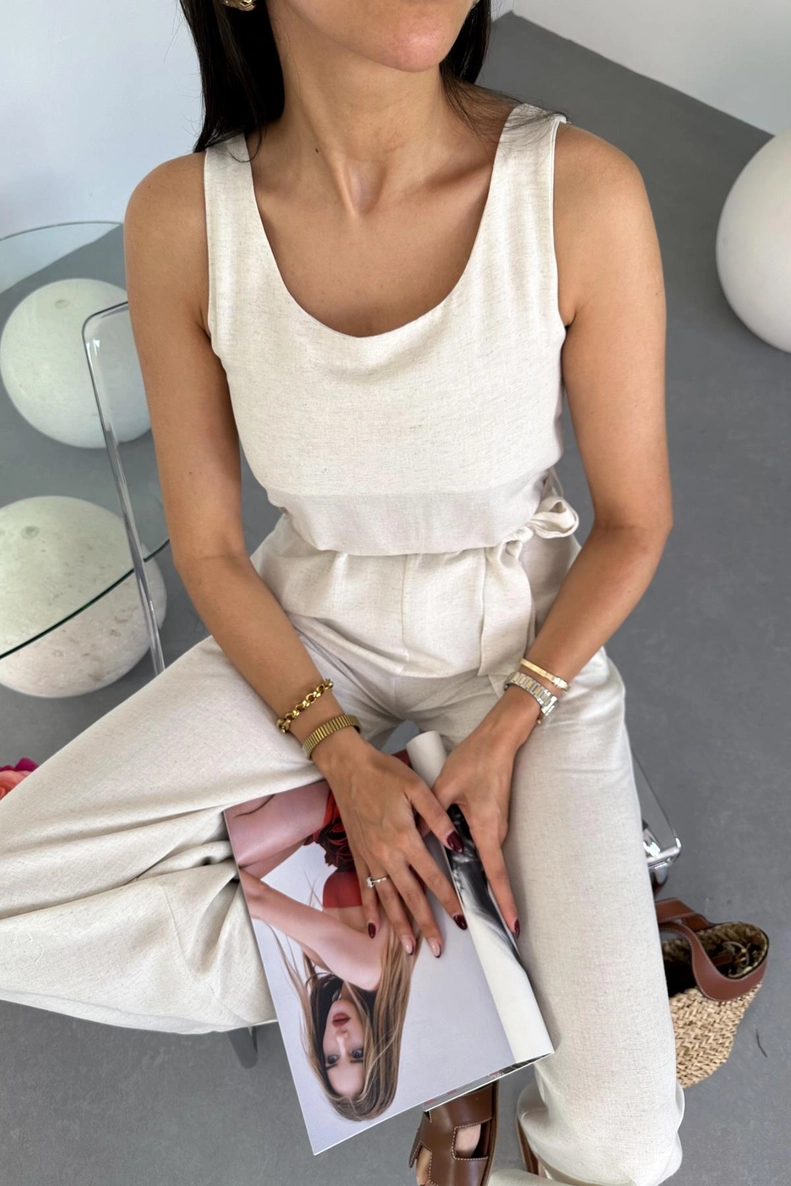 Emely Kırık Beyaz Yelek Pantolon Takım
