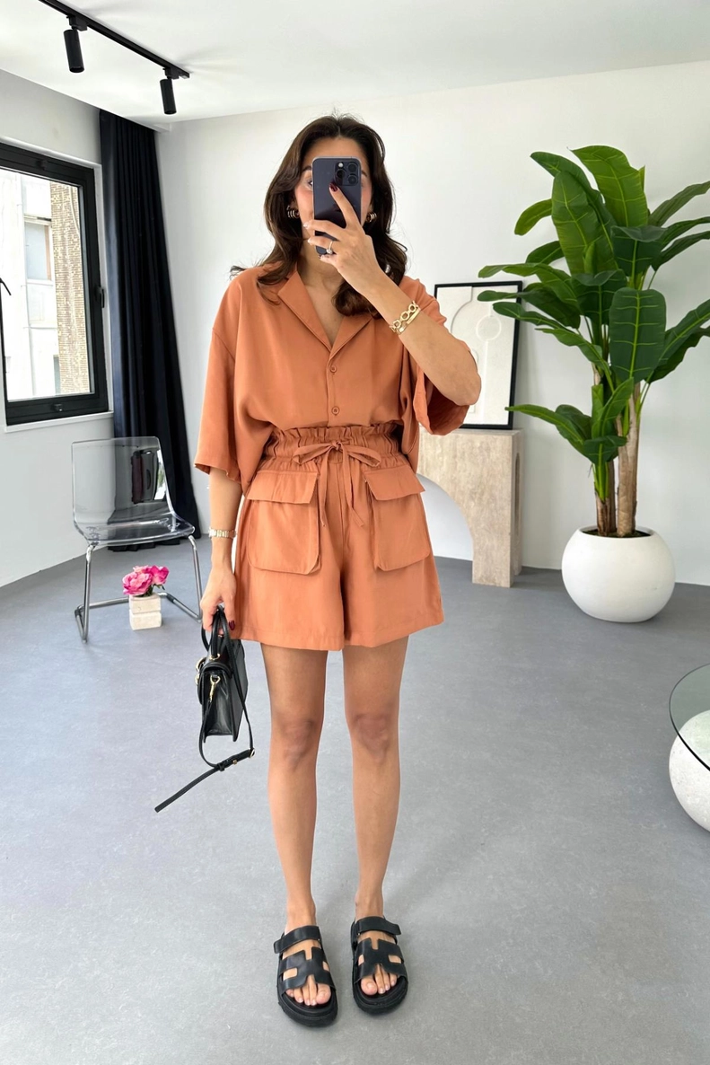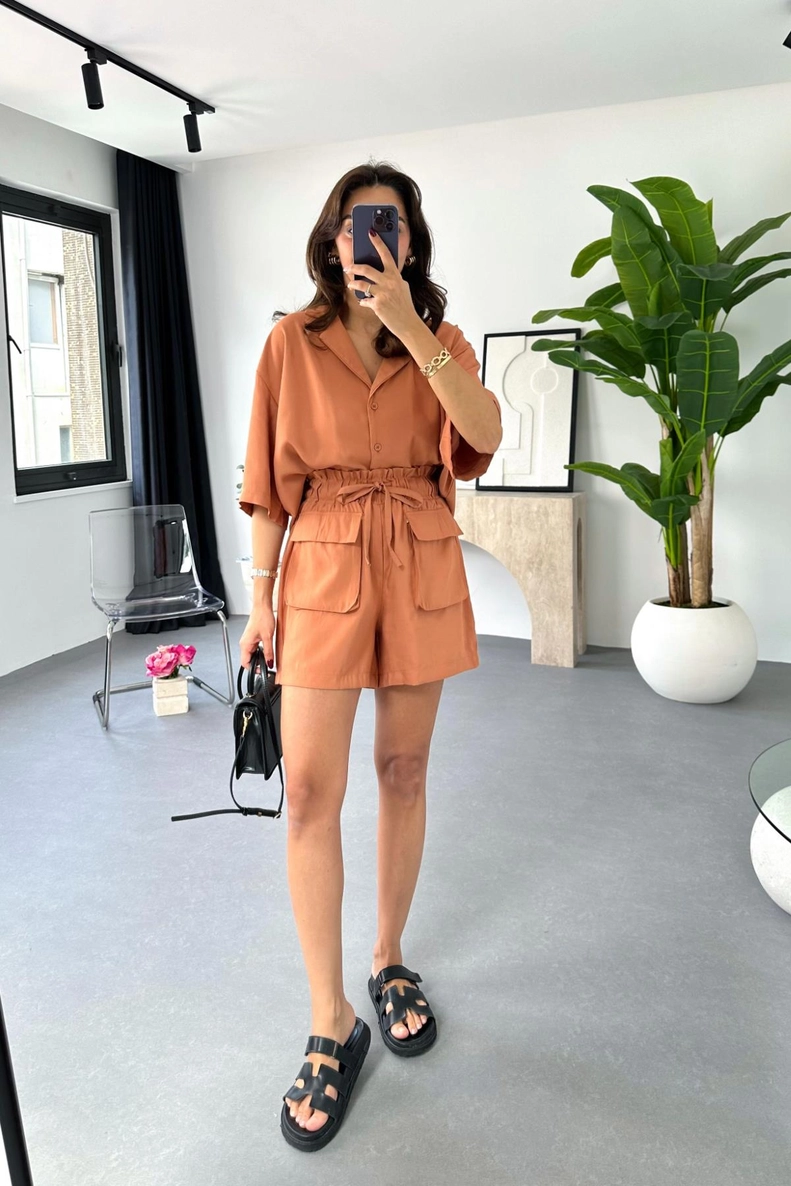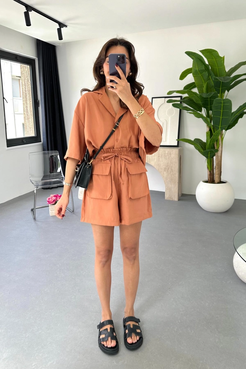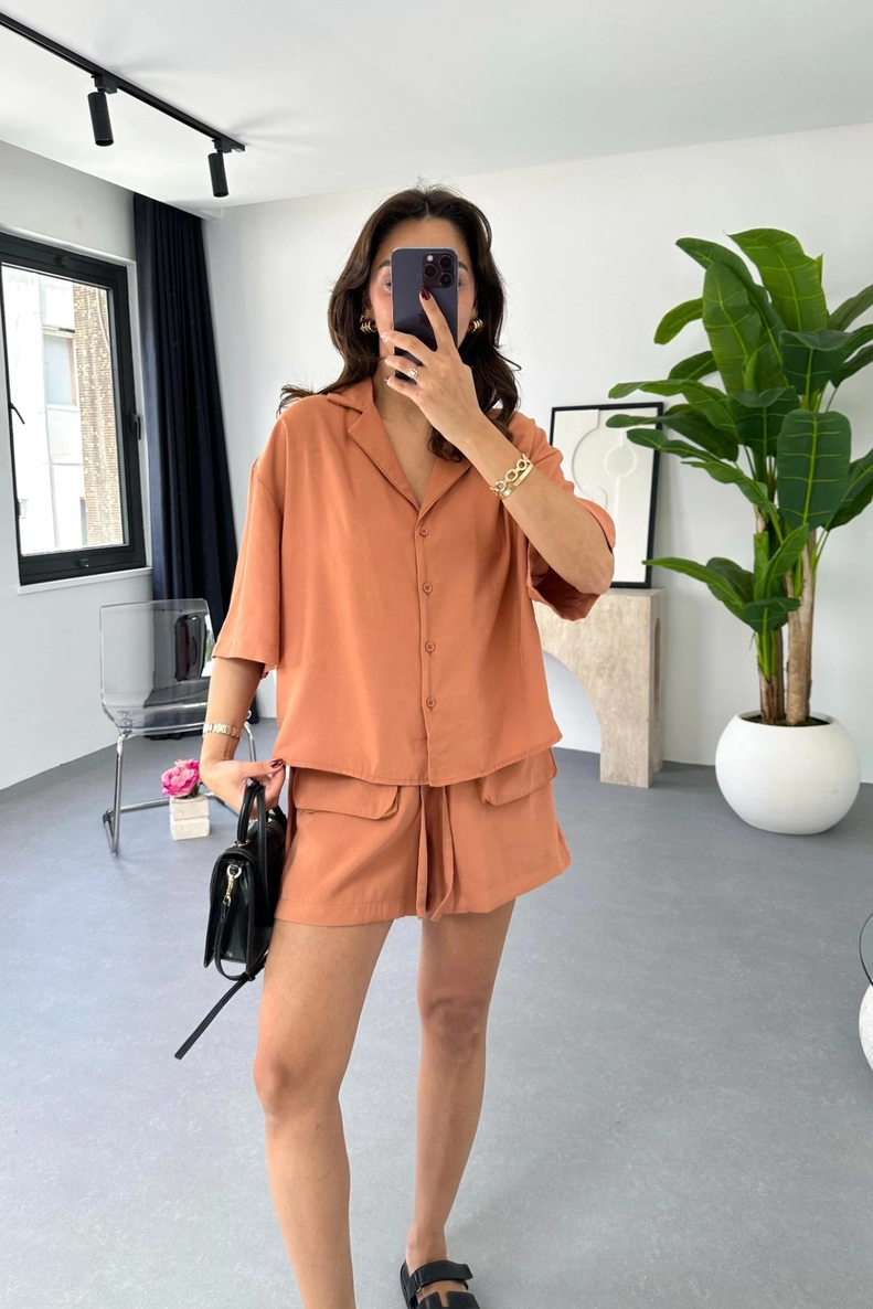 Formy Yavruağzı Şort Gömlek Tensel Takım
