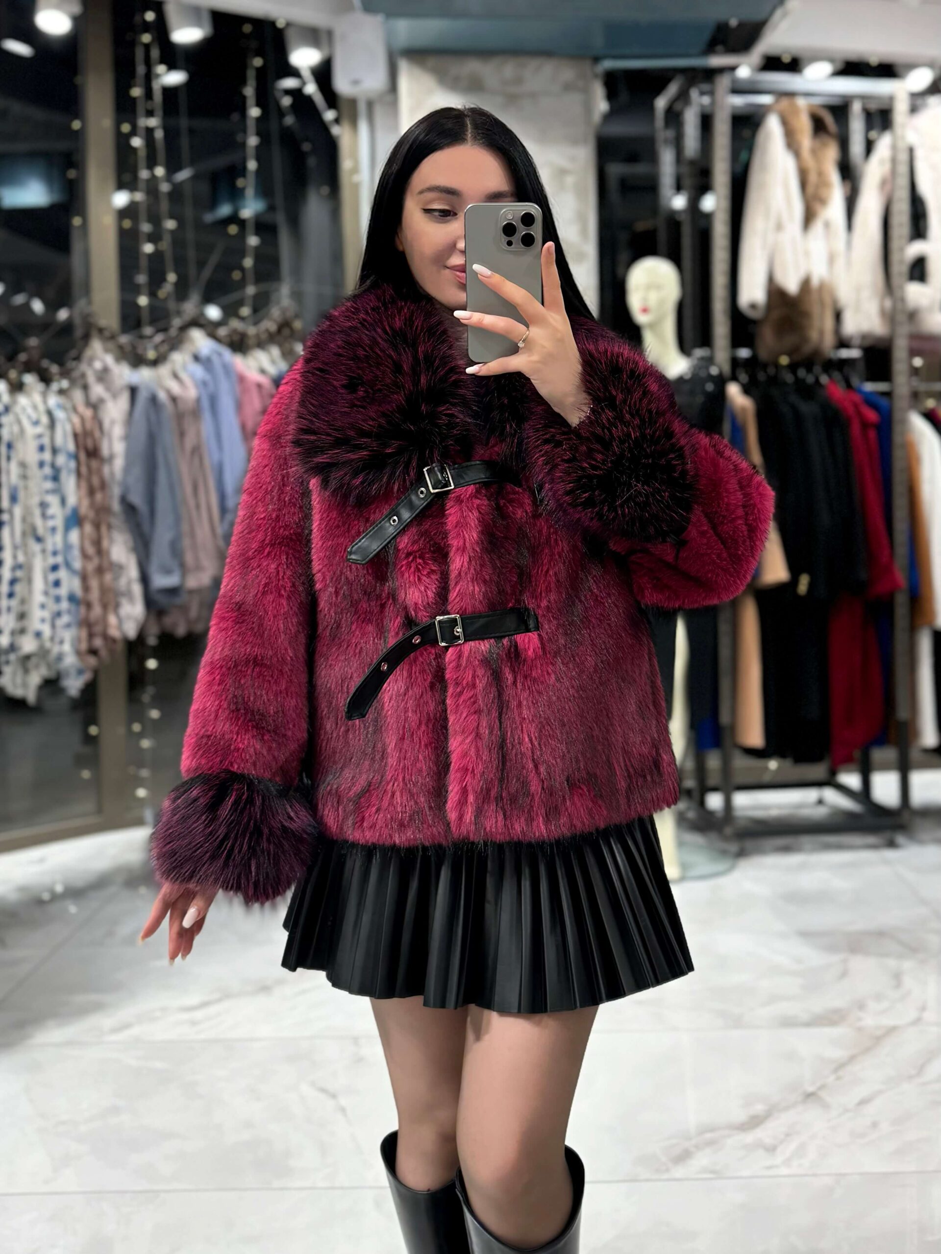 Ana Sayfa Çok Satanlar Foxy İthal VİP Deri Kemer Detaylı Tilki Görünümlü Benekli Yaka Detaylı Kürk Siyah Fuşya
