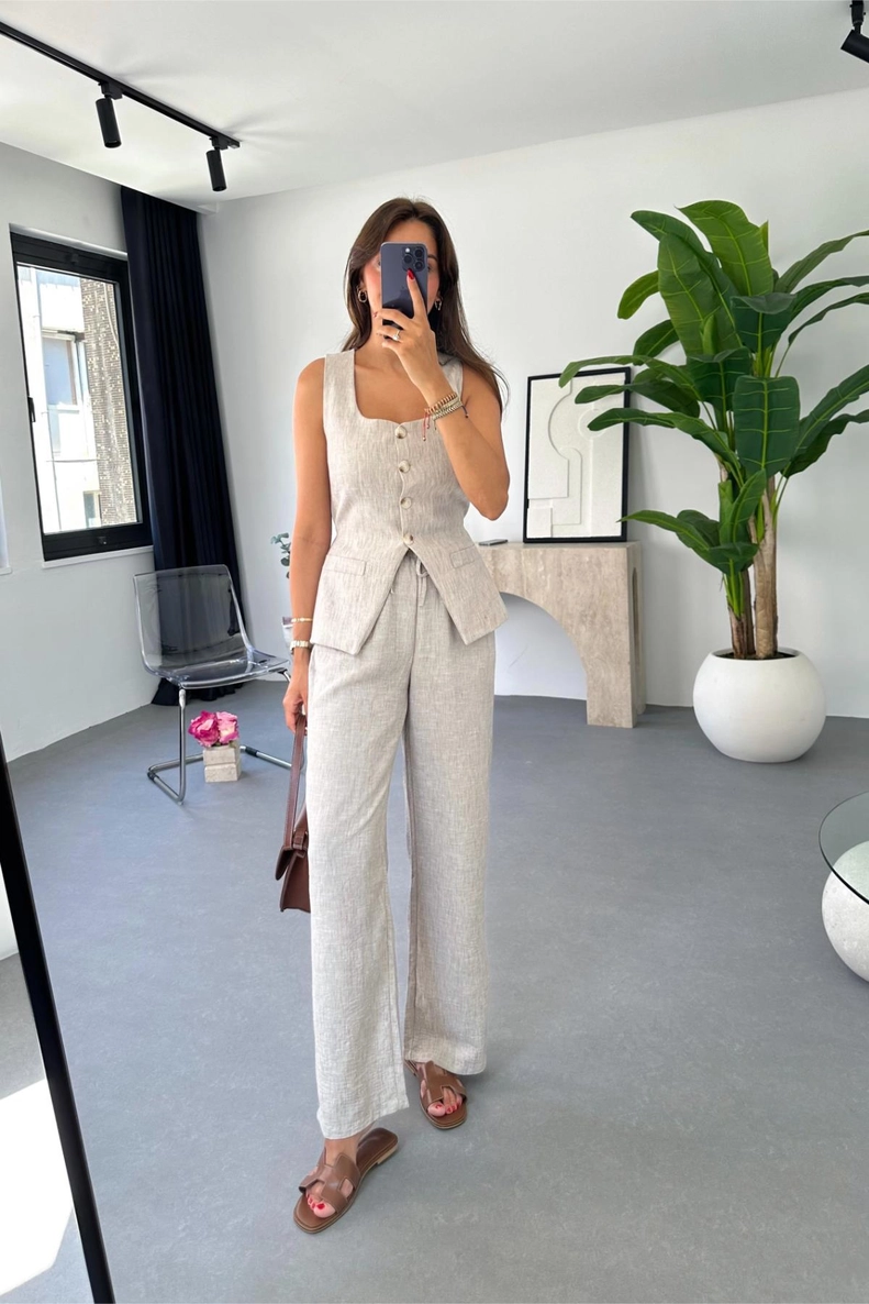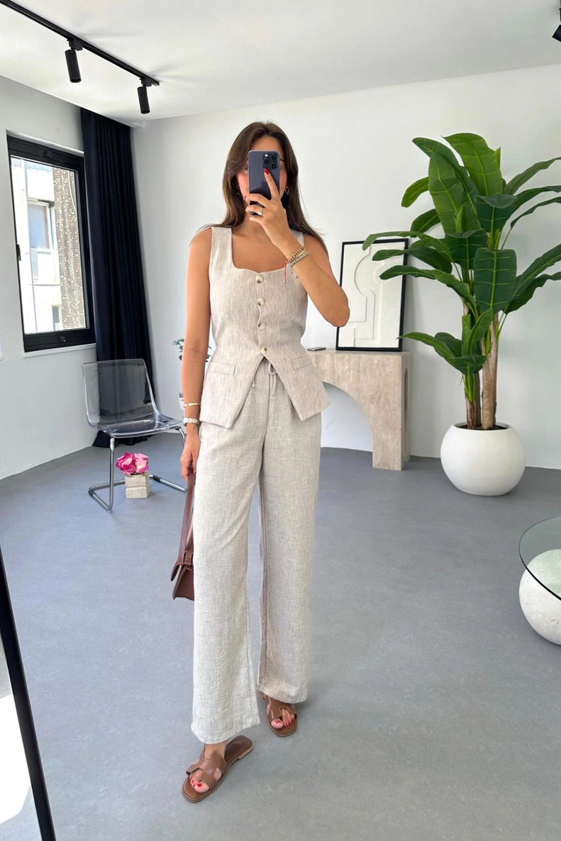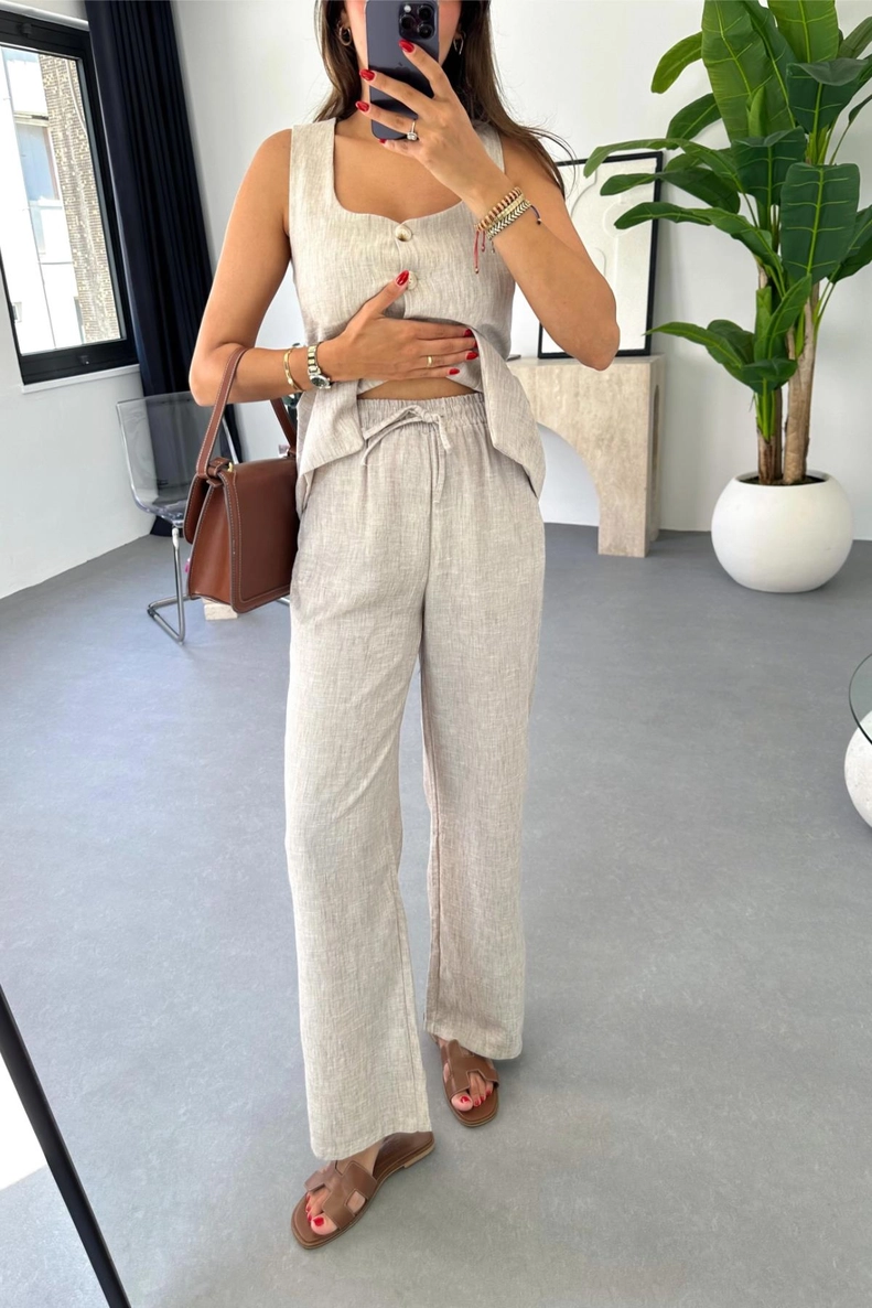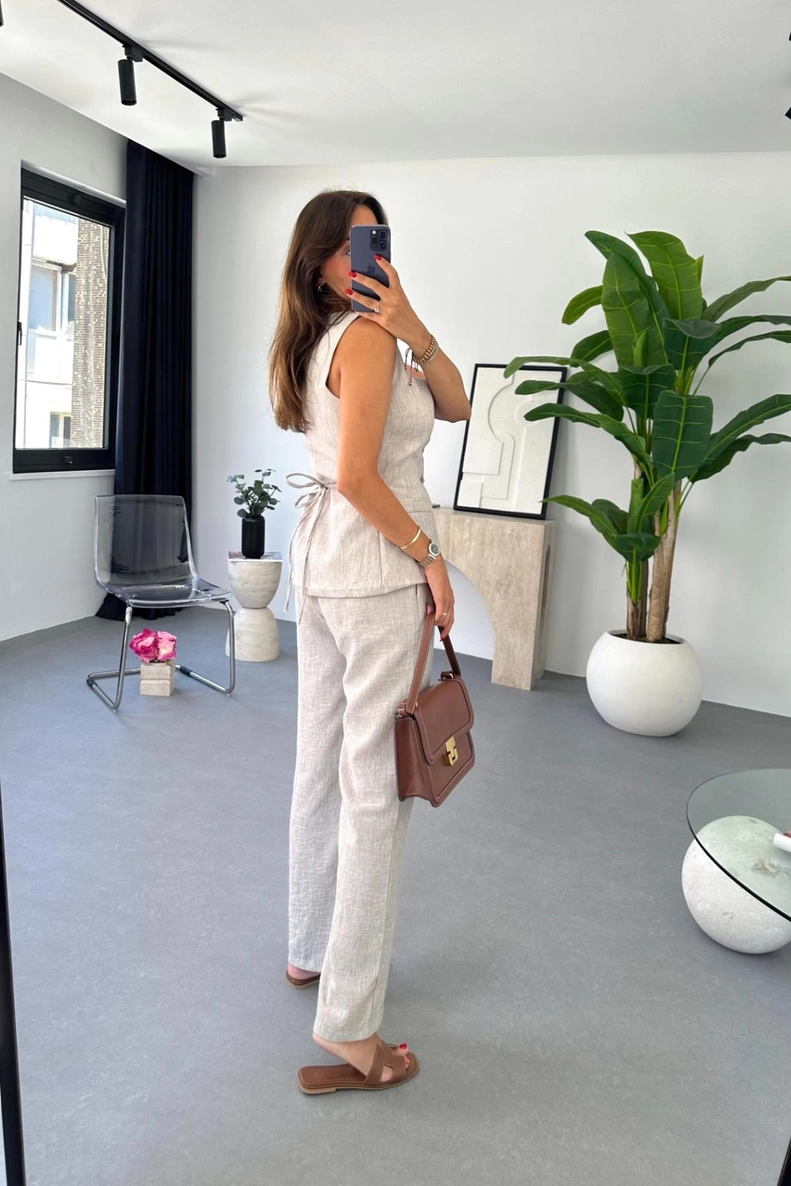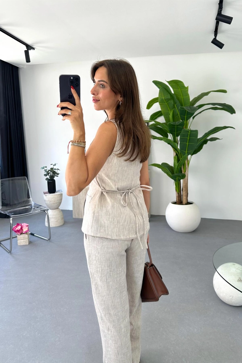 Lariss Taş Beli Bağlamalı Yelek Pantolon Takım
