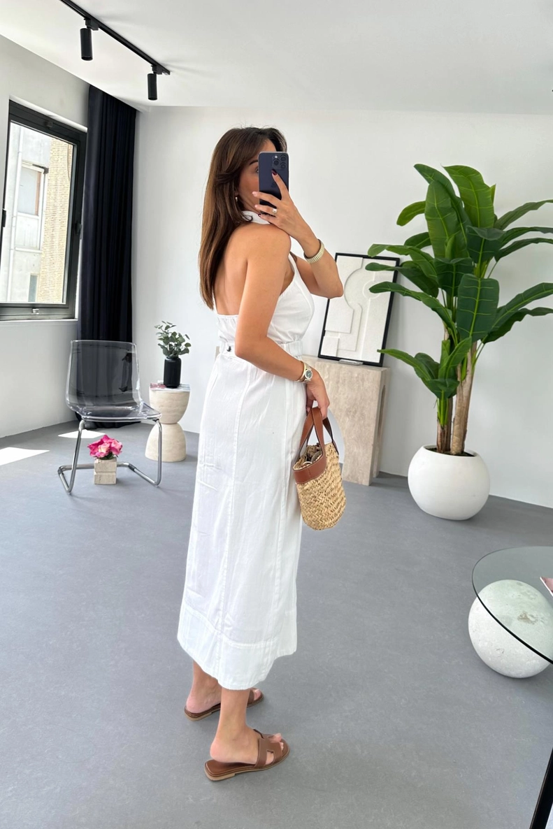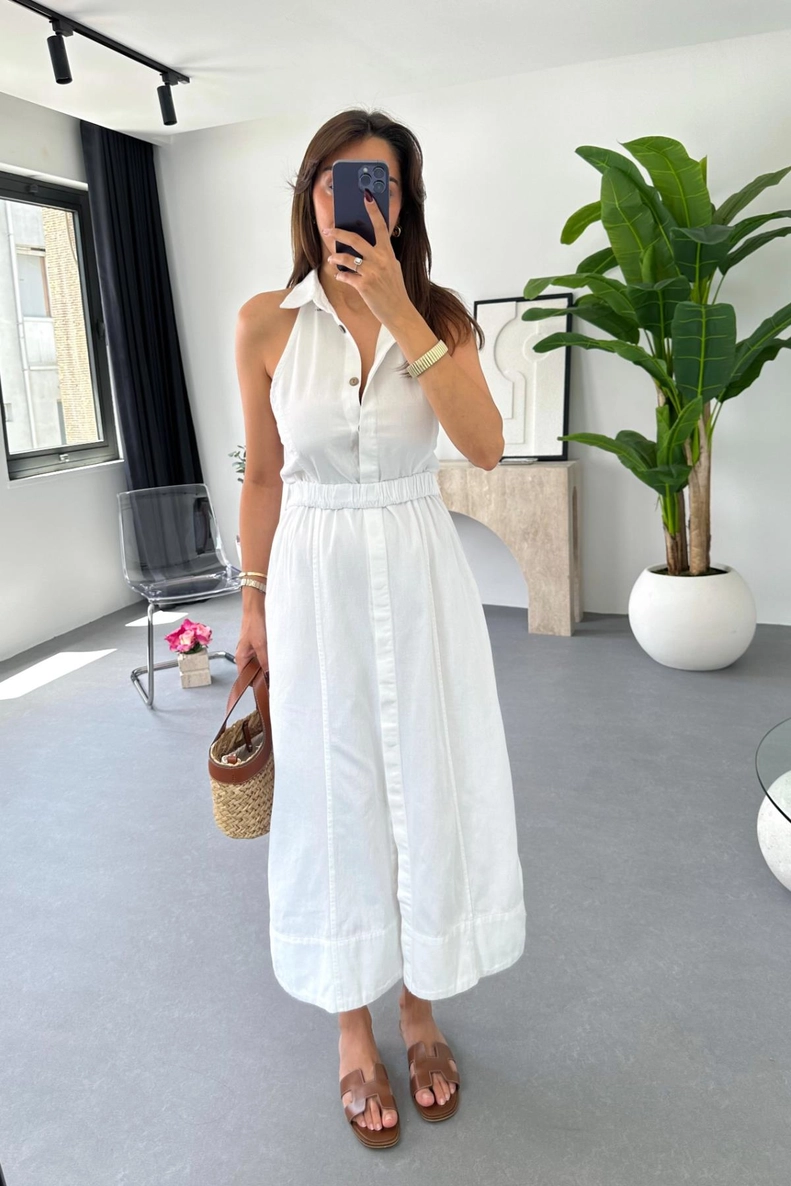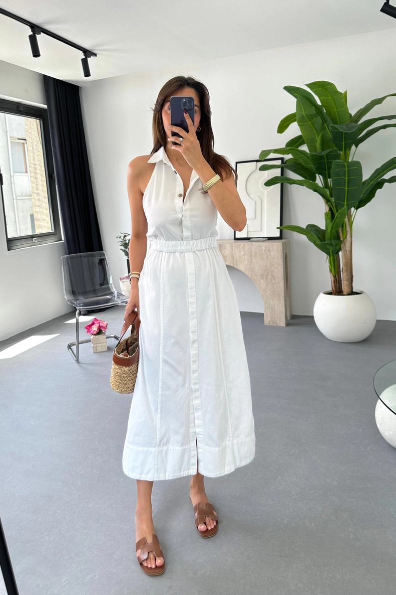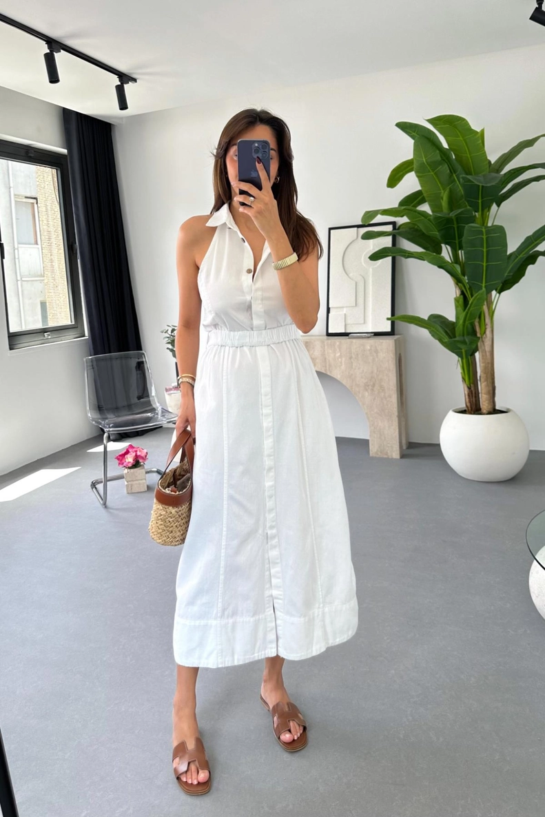 Loves Beyaz Halter Yaka Gabardin Elbise