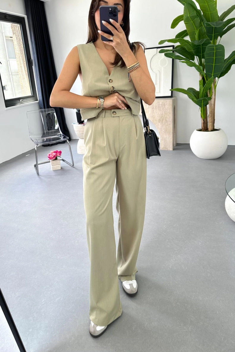 Ana Sayfa Çok Satanlar Mena Haki Çapraz Yelekli Pantolon Takım