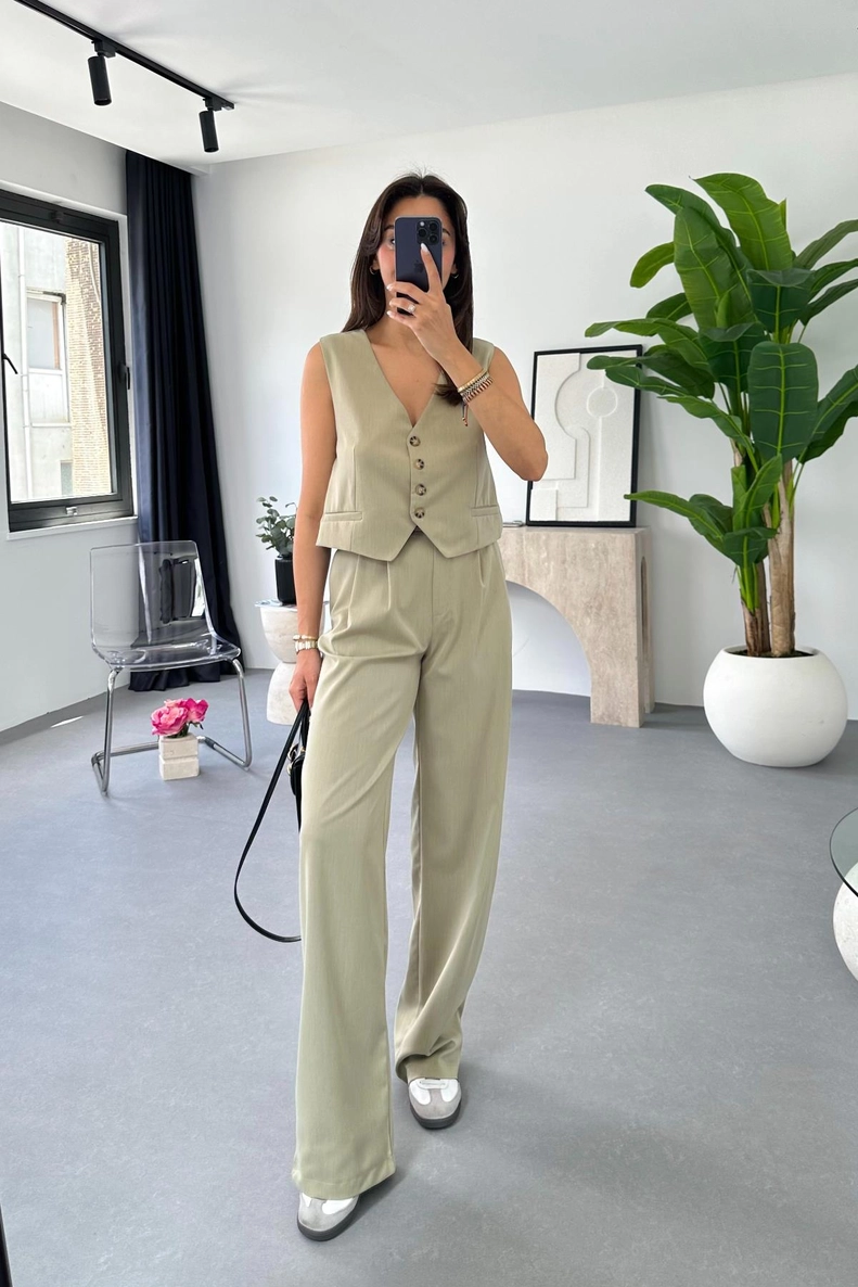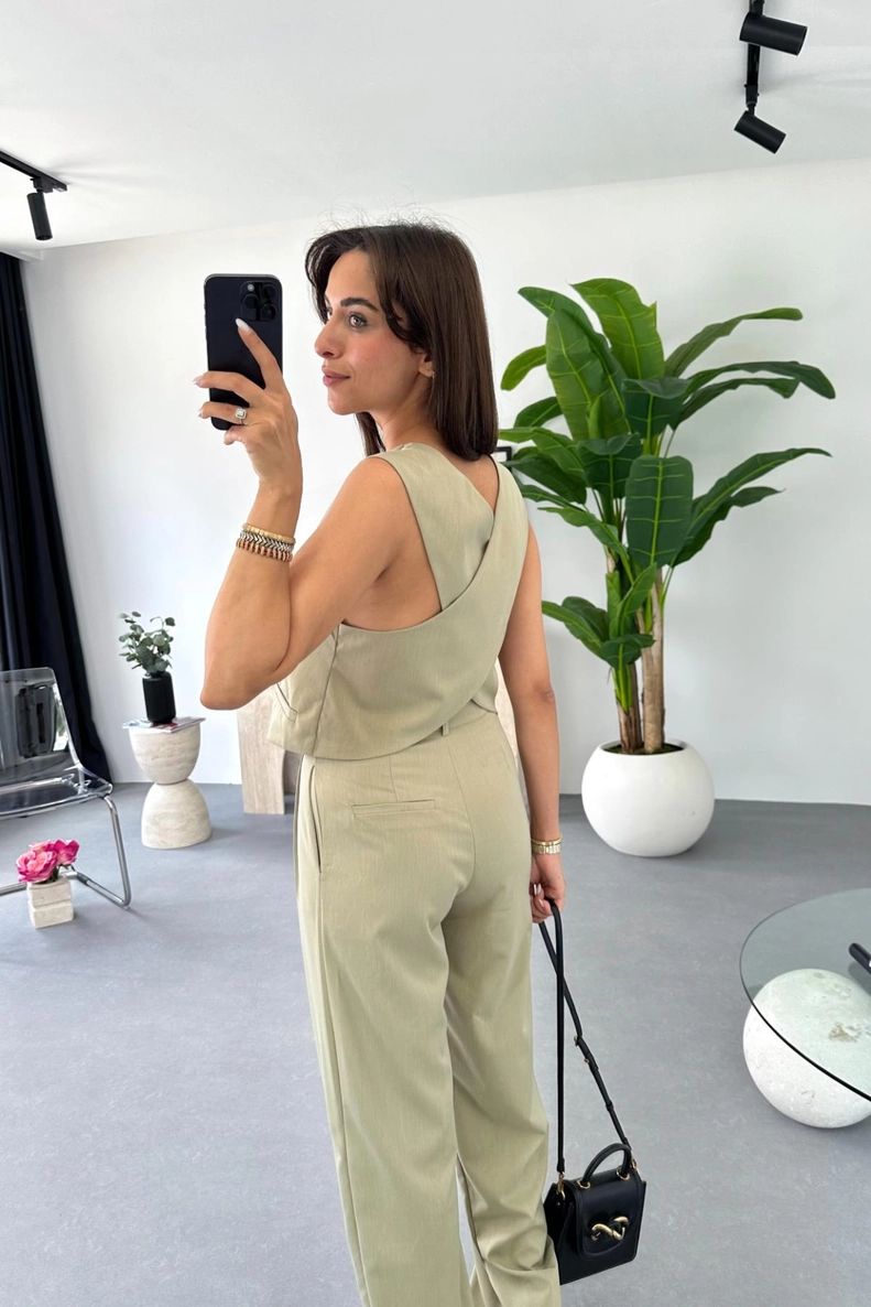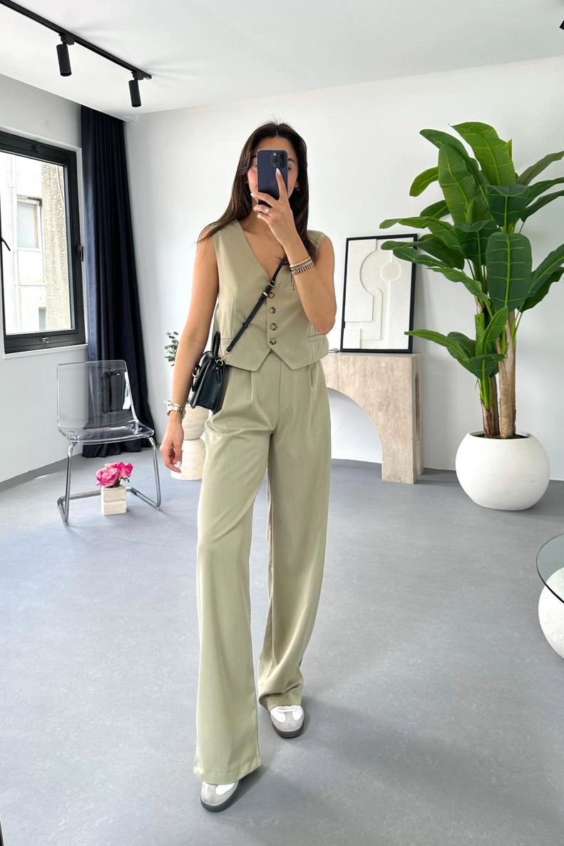Mena Haki Çapraz Yelekli Pantolon Takım