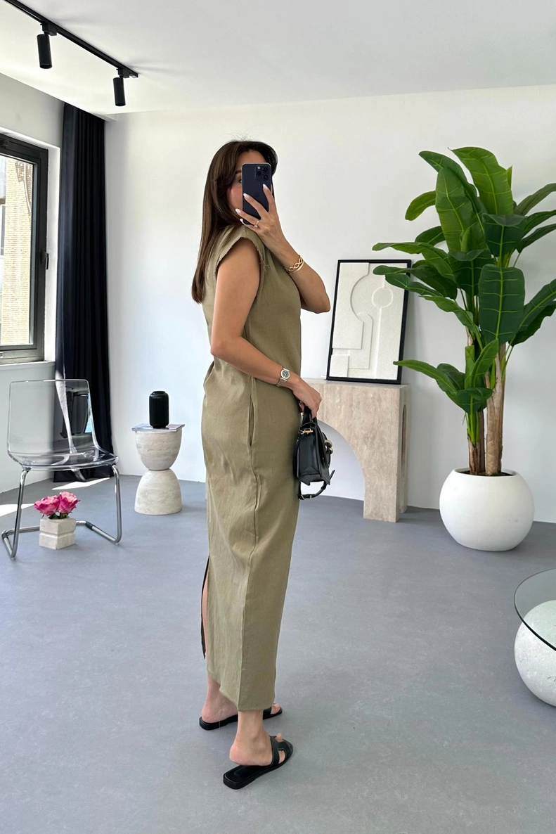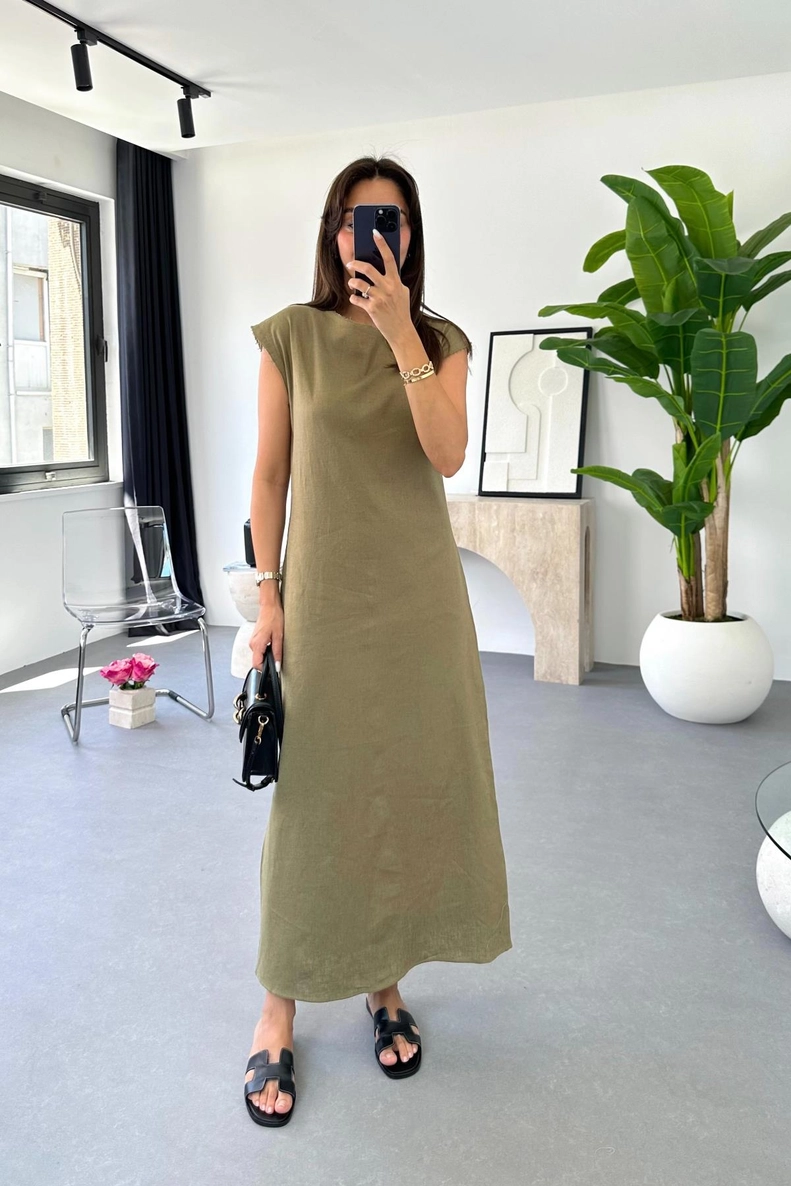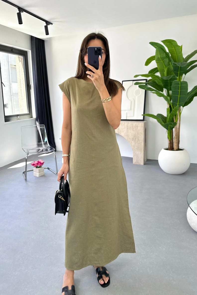 Ana Sayfa Elbise Nelsa Haki Keten Elbise