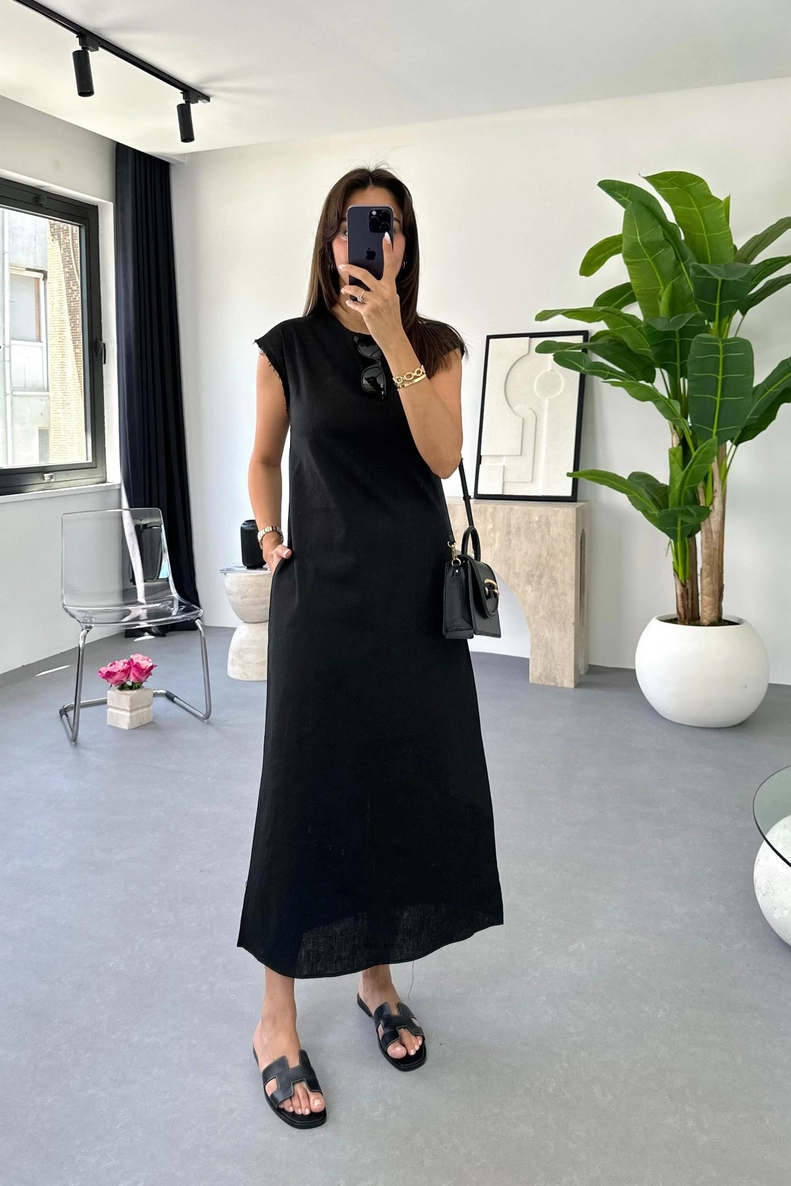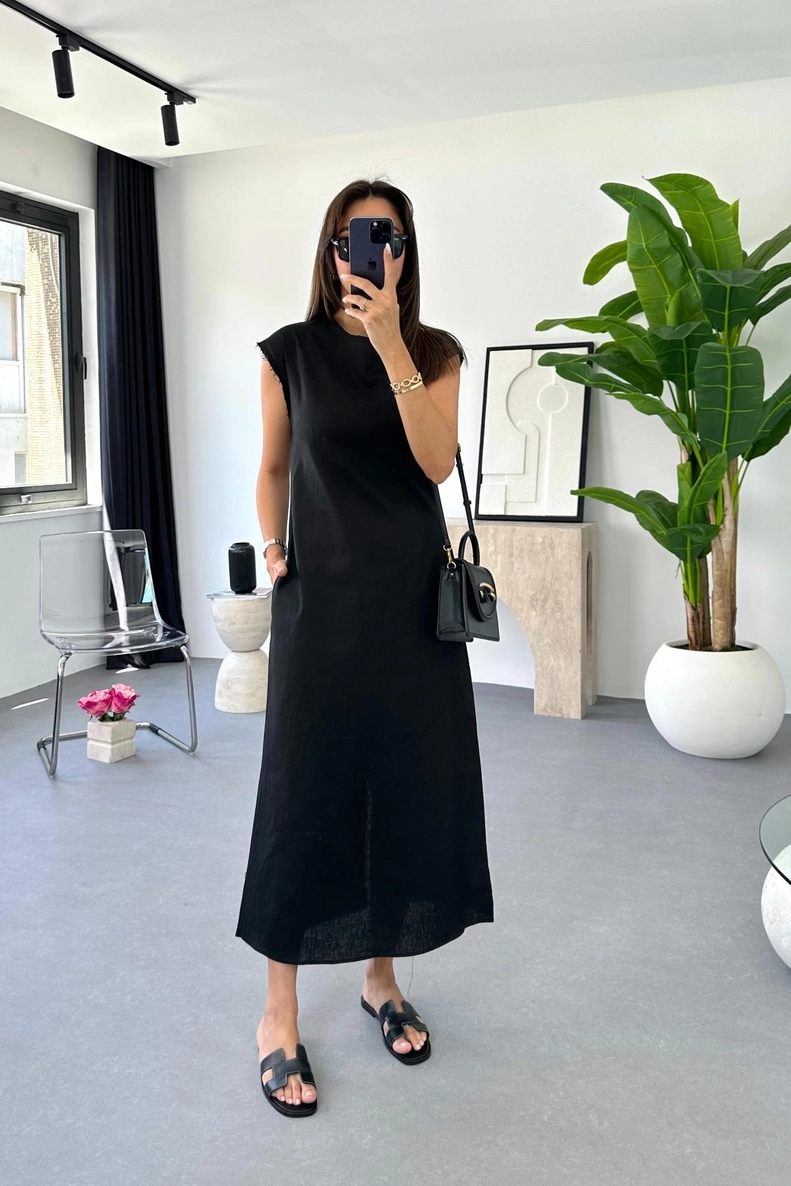 Ana Sayfa Elbise Nelsa Siyah Keten Elbise