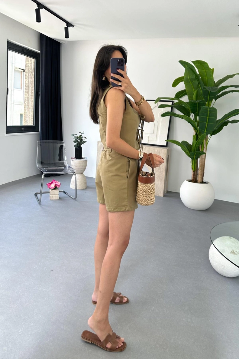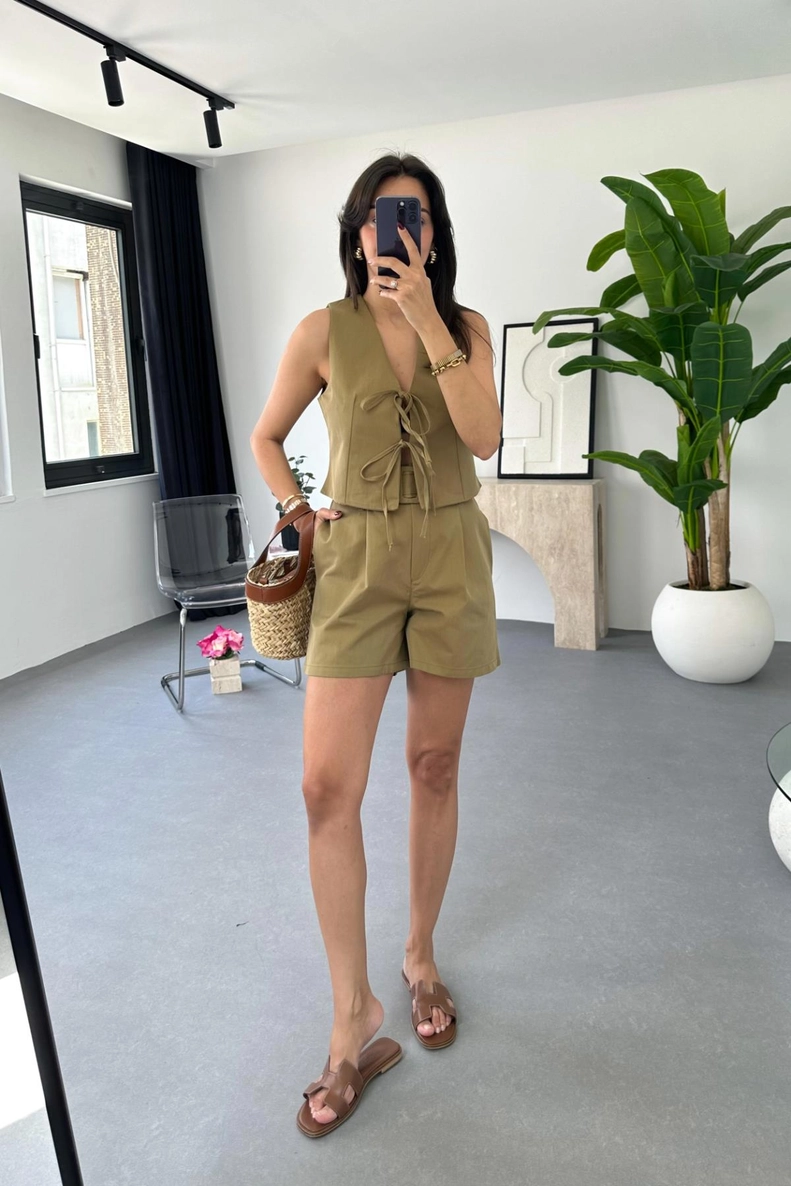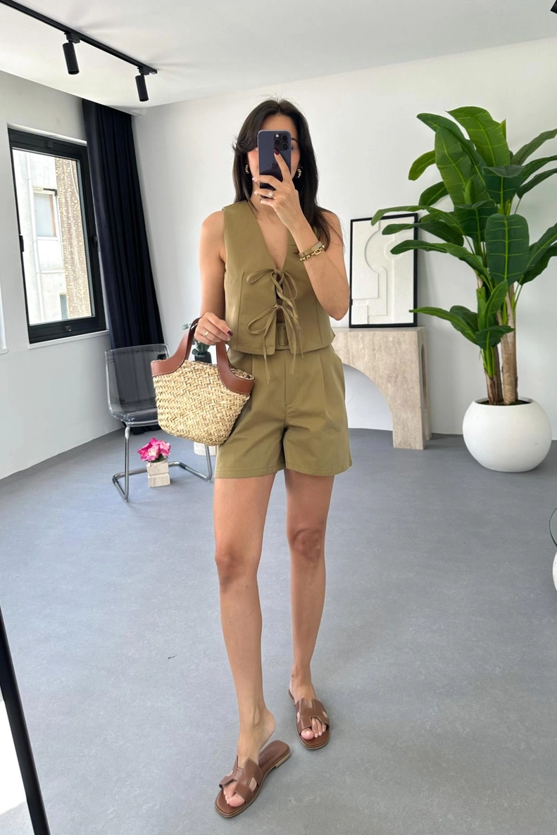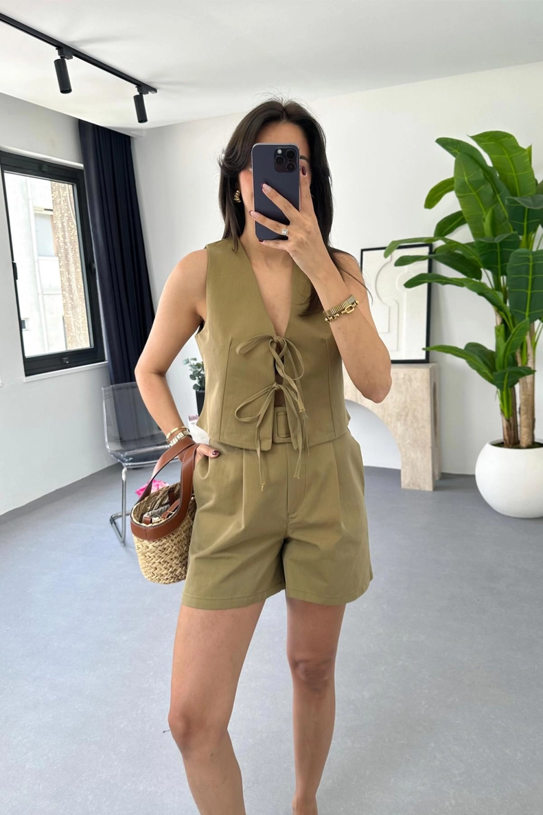 Rena Haki Kemer Detaylı Yelek Şort Takım