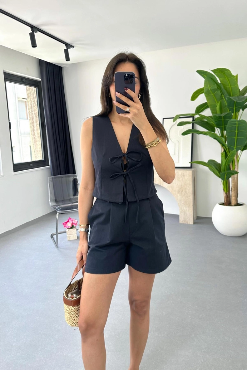 Ana Sayfa Takım Rena Lacivert Kemer Detaylı Yelek Şort Takım