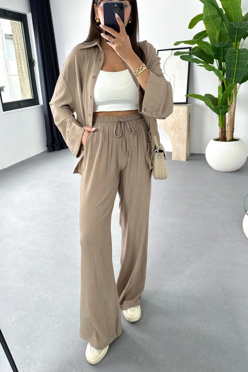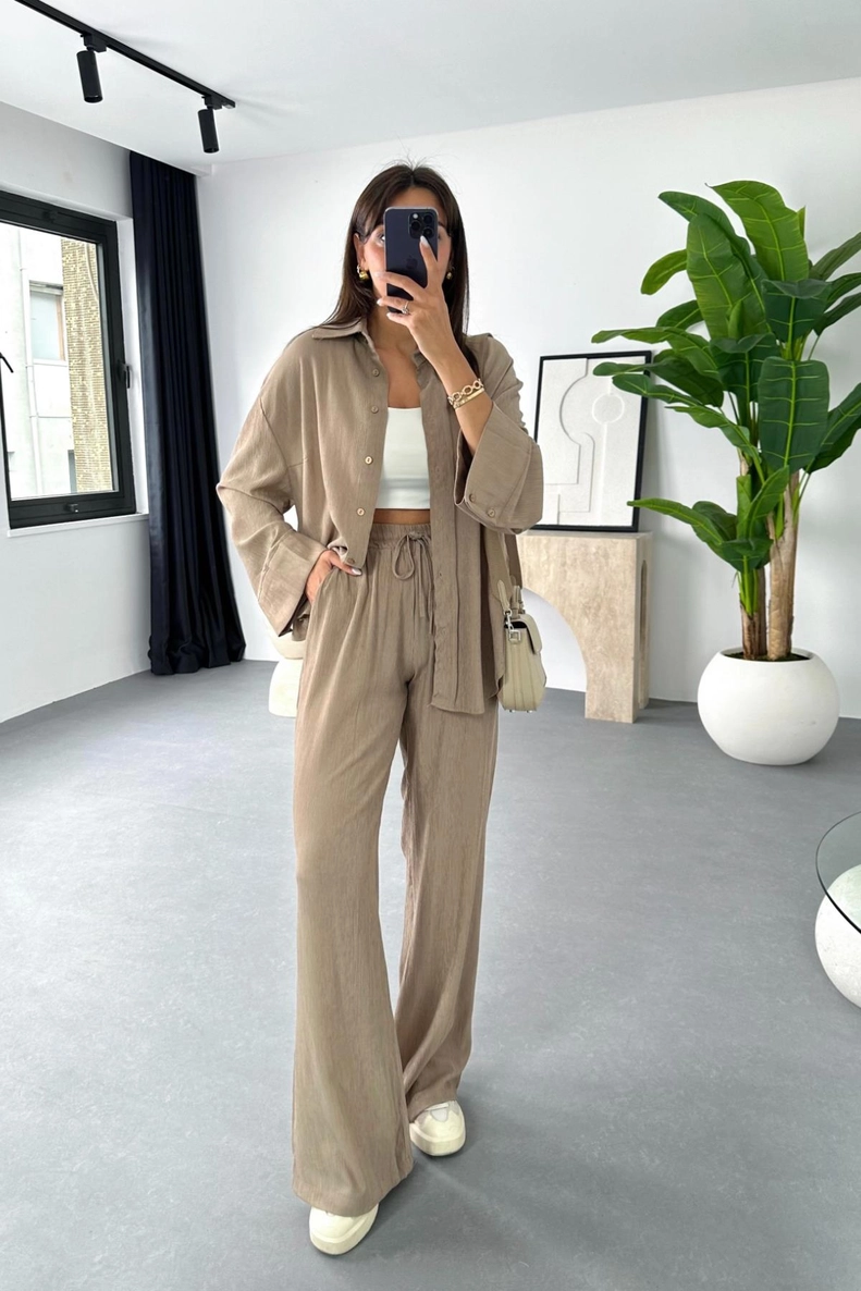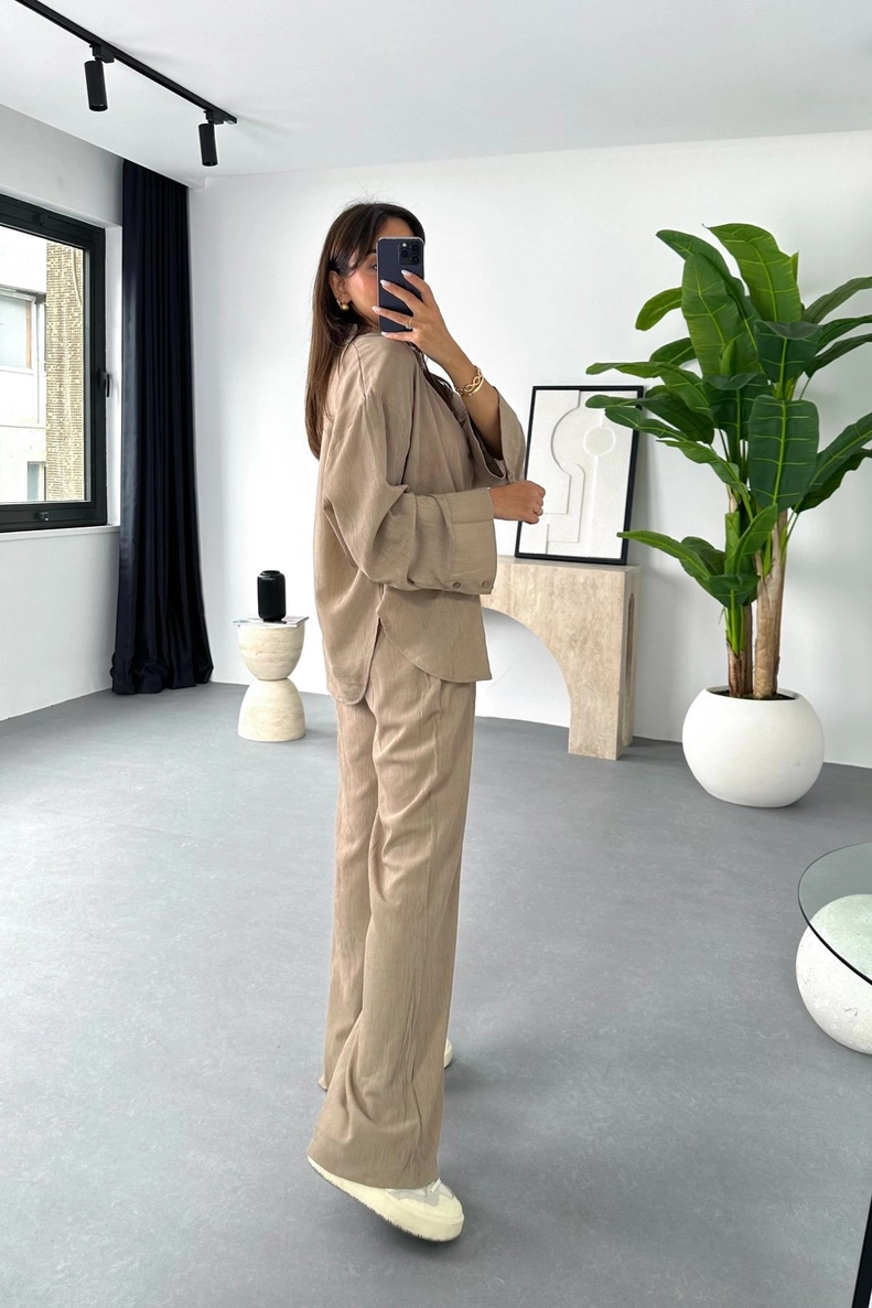 Boliva Kahve Keten Gömlek Pantolon Takım