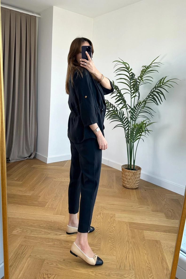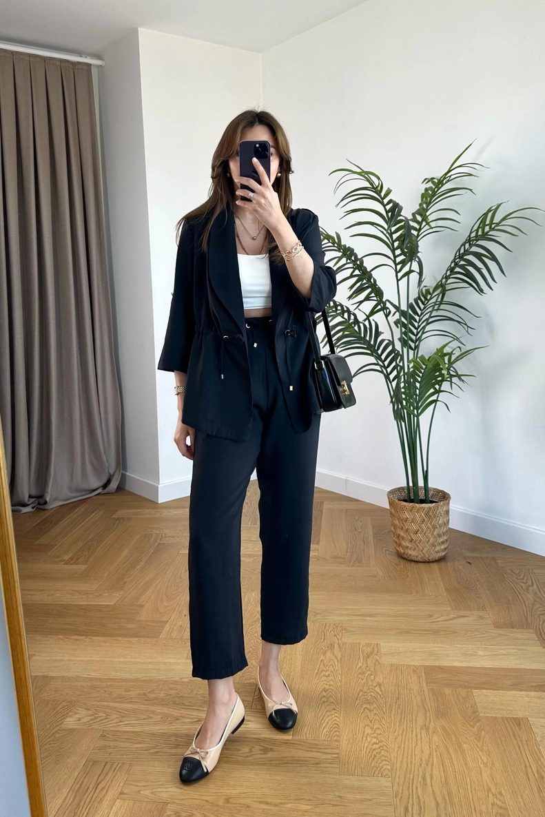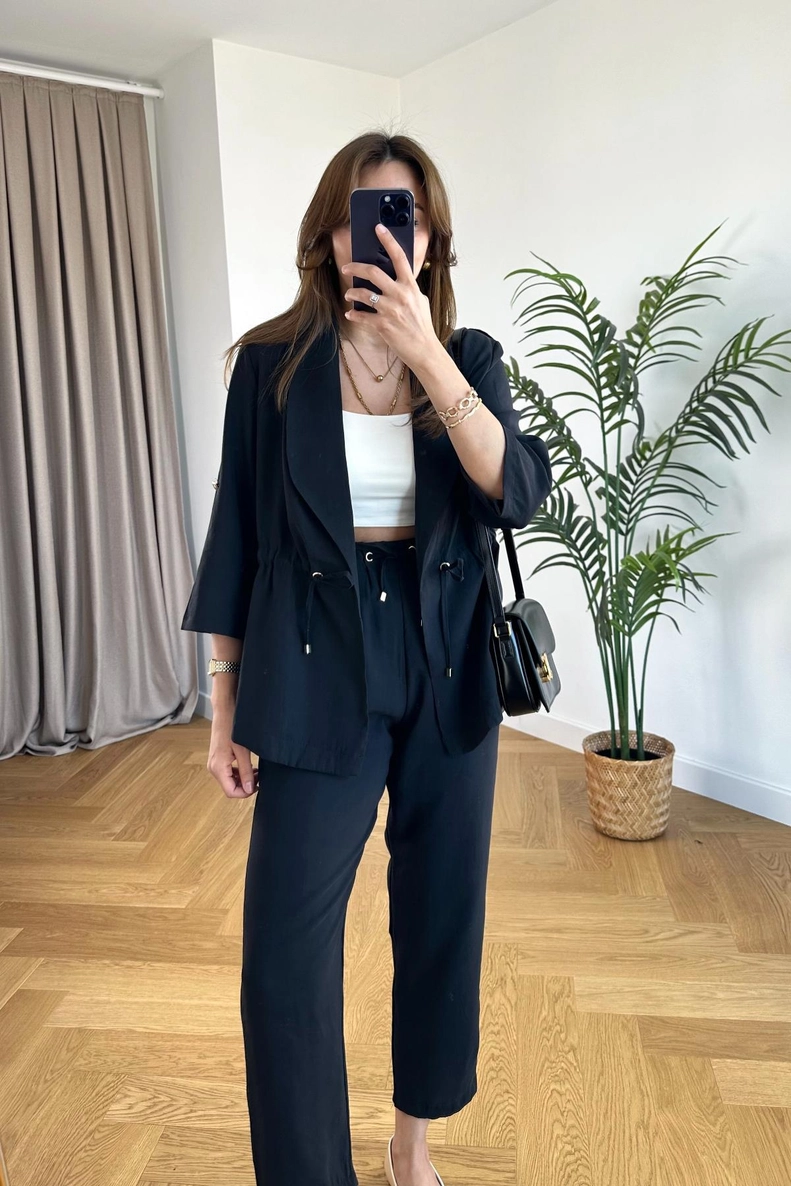 Kuly Siyah Kısa Kollu Keten Takım