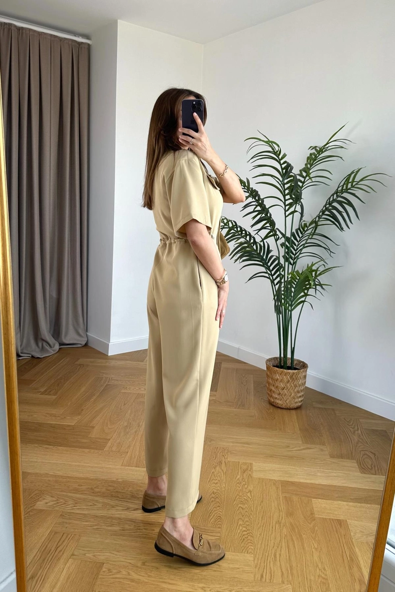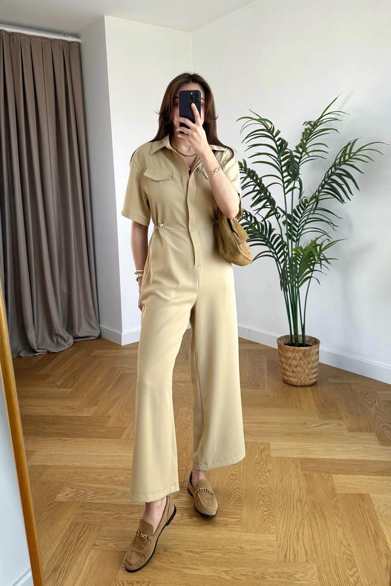 Rena Bej Kemer Detaylı Yelek Şort Takım