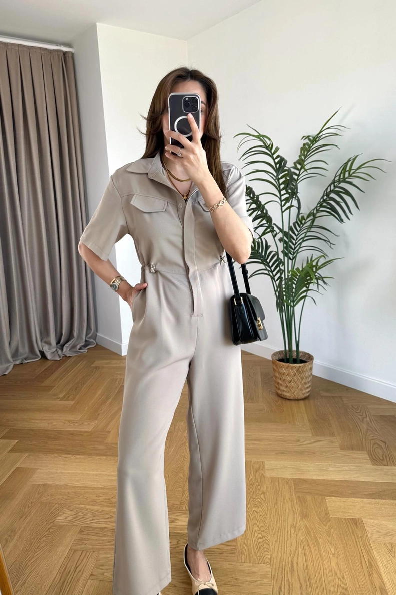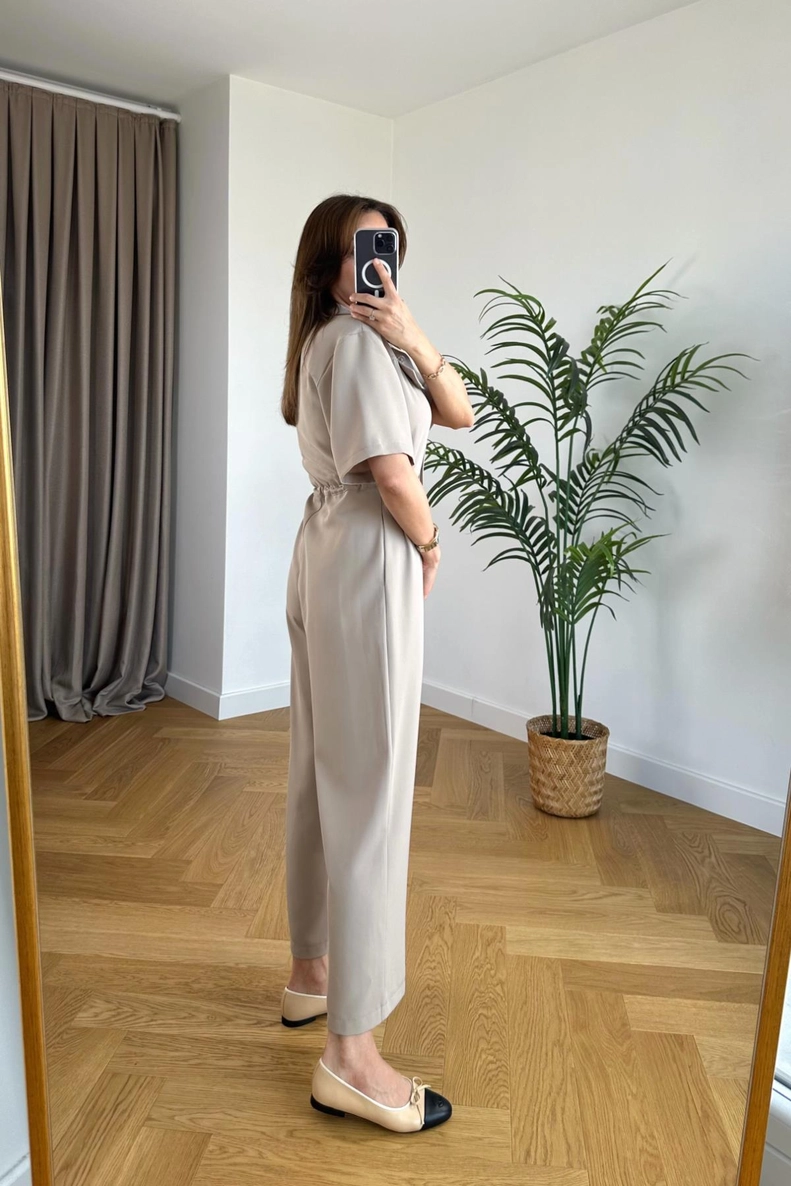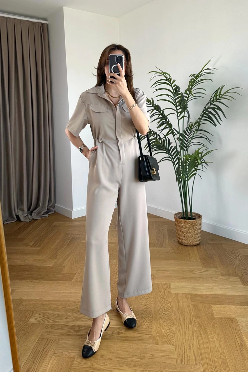 Rena Bej Kemer Detaylı Yelek Şort Takım
