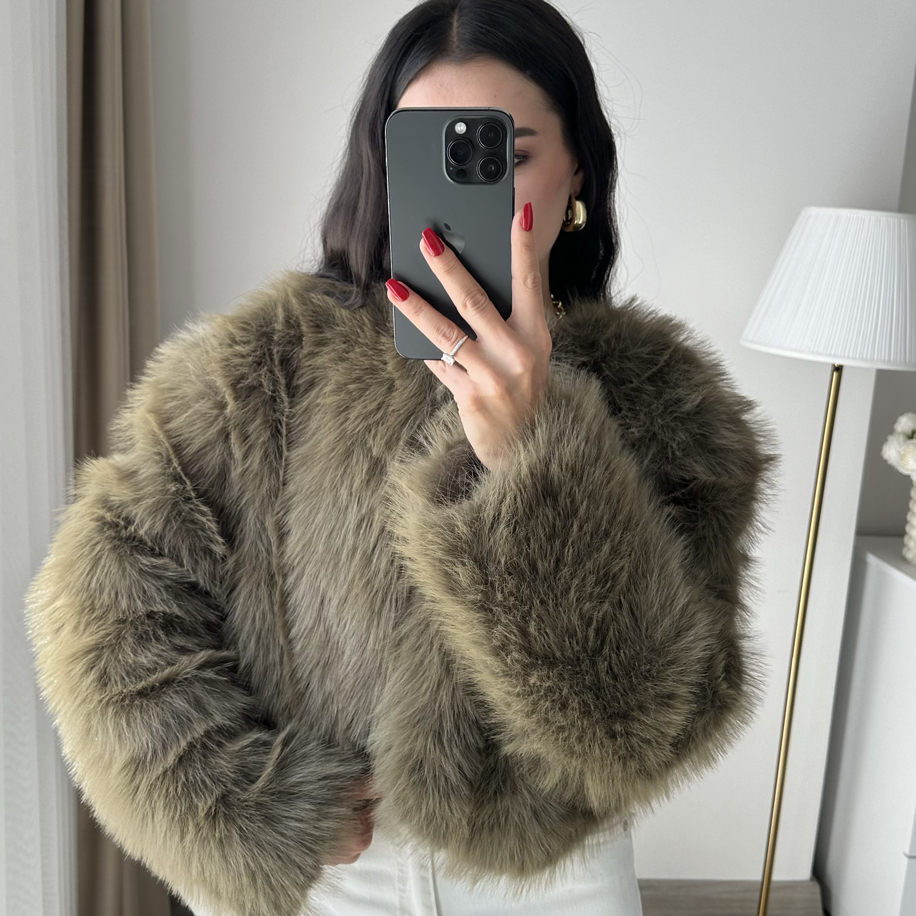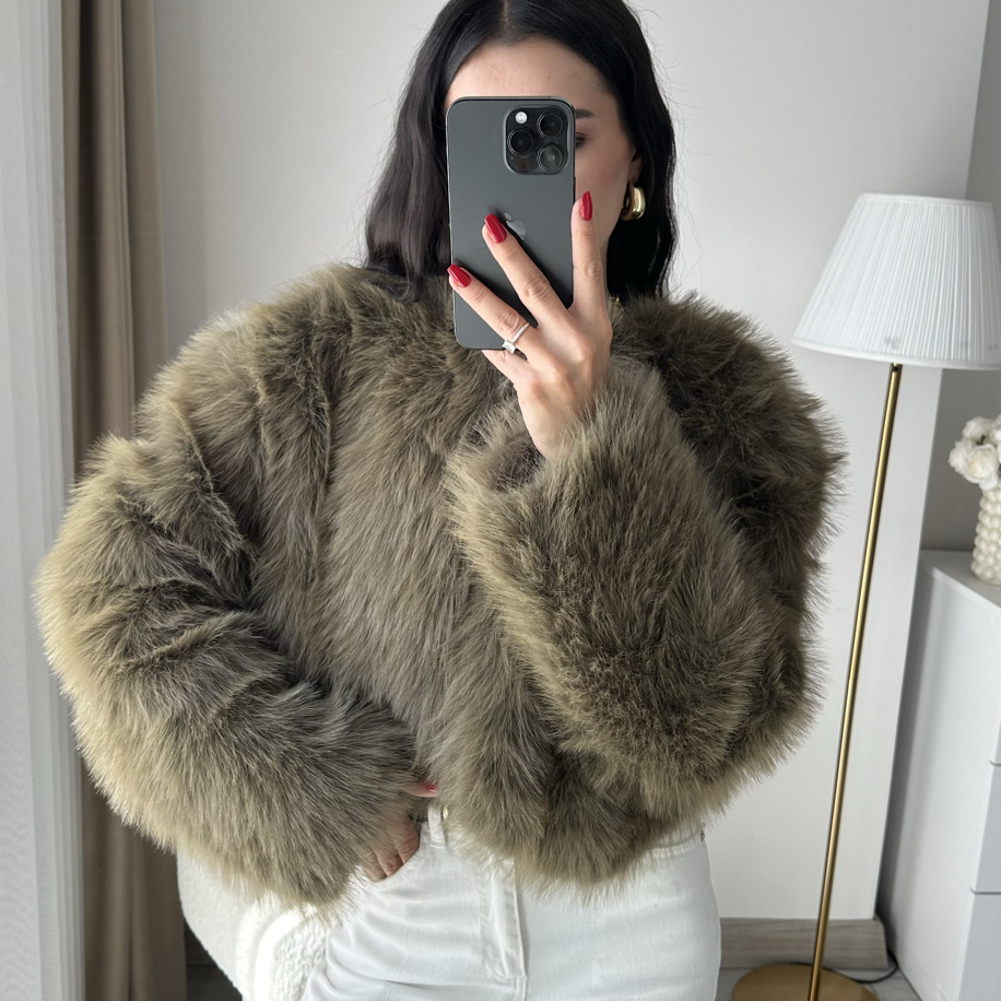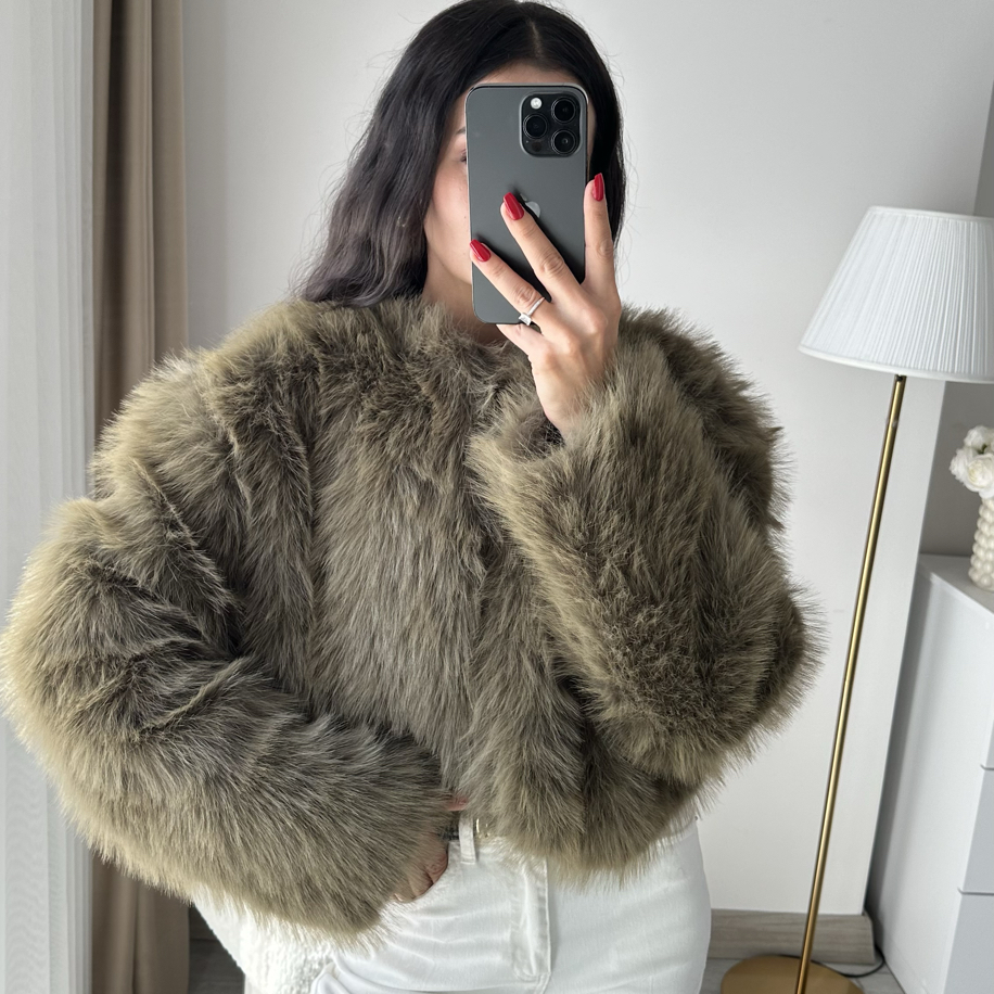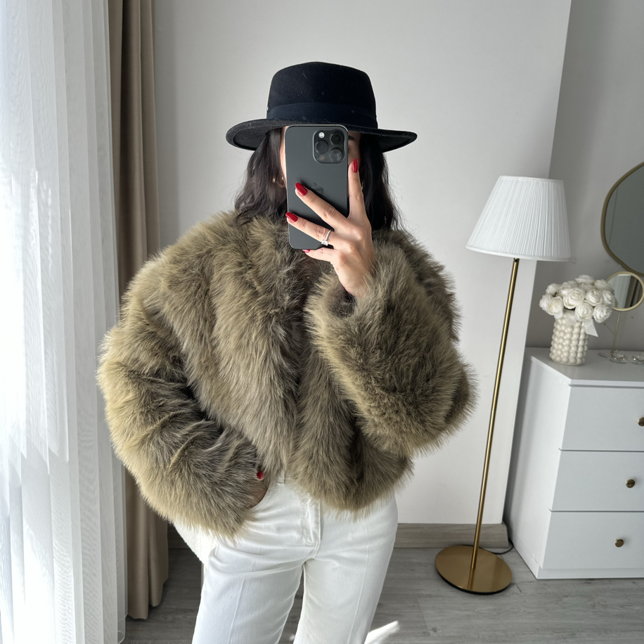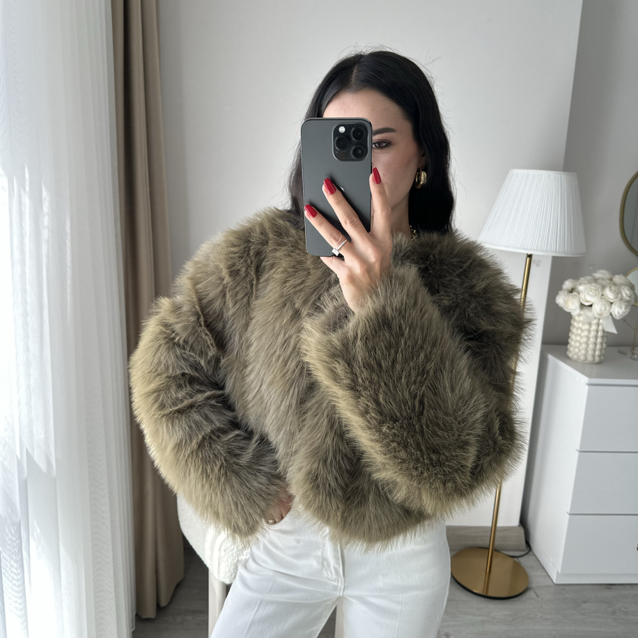 Ana Sayfa Çok Satanlar Zr Haki Yeşili Yakasız Crop Kürk